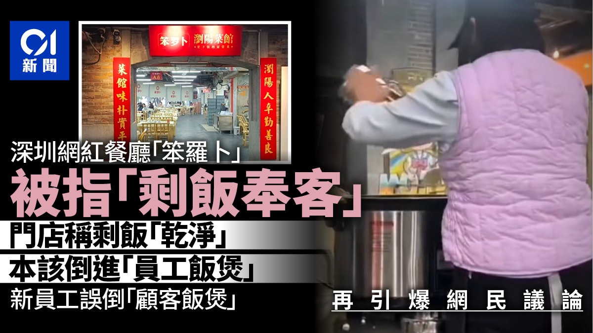 & v8 M9 j0 ?, c1月29日,「笨羅卜」瀏陽菜館(深圳店)負責人回應稱,給顧客的米飯都是盛進保溫桶內,本著節約糧食的原則,顧客沒吃完或留在保溫桶內的米飯,員工會裝進另一個電飯煲,留給內部員工吃用,「飯是很乾淨的」。