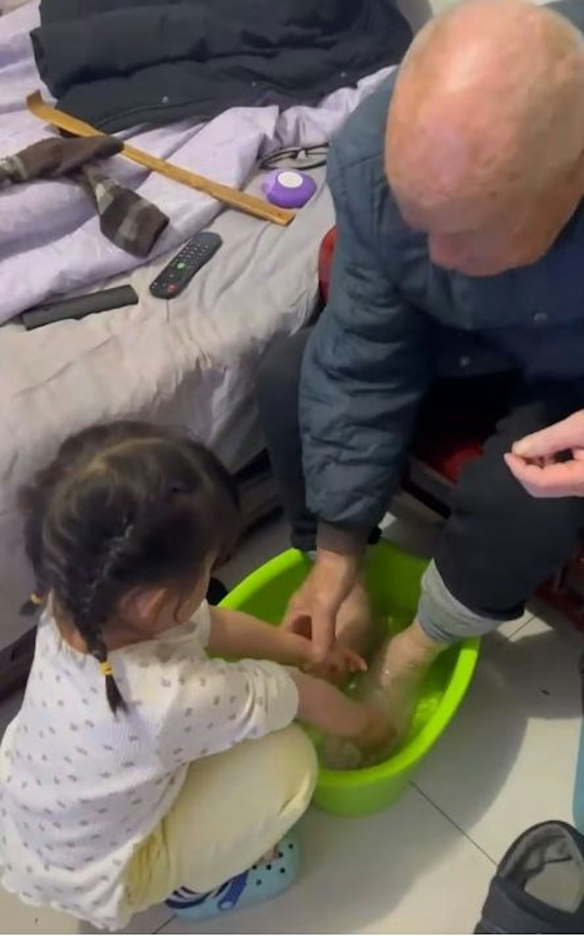 就這樣,劉某軍從該年11月開始扶養阮大爺,甚至全家搬至對方家一起生活,並拍片記錄下他們其樂無窮的日常,包括一家人為阮大爺過生日、、小孫女為老人洗腳等。2 Y% g* S3 Q5 F' X: H9 w