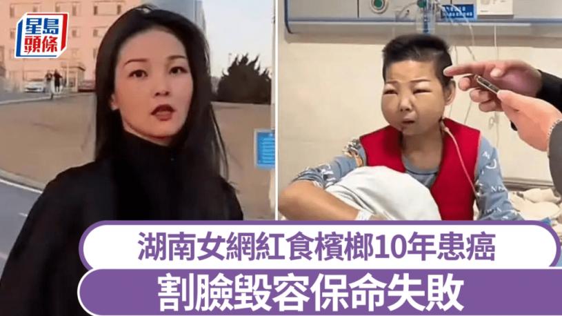 8 h6 w1 ]5 s9 ^. o9 s據了解,「雨虹妹妹」是沅江人,從年輕時就開始嚼檳榔,已有10年之久。最初,她不時出現口腔潰瘍,初時未有在意。直至到了2019年底,她被確診為口腔肉瘤狹癌,為了保住生命,原本擁有亮麗外表的她不得不進行手術切除右臉。
