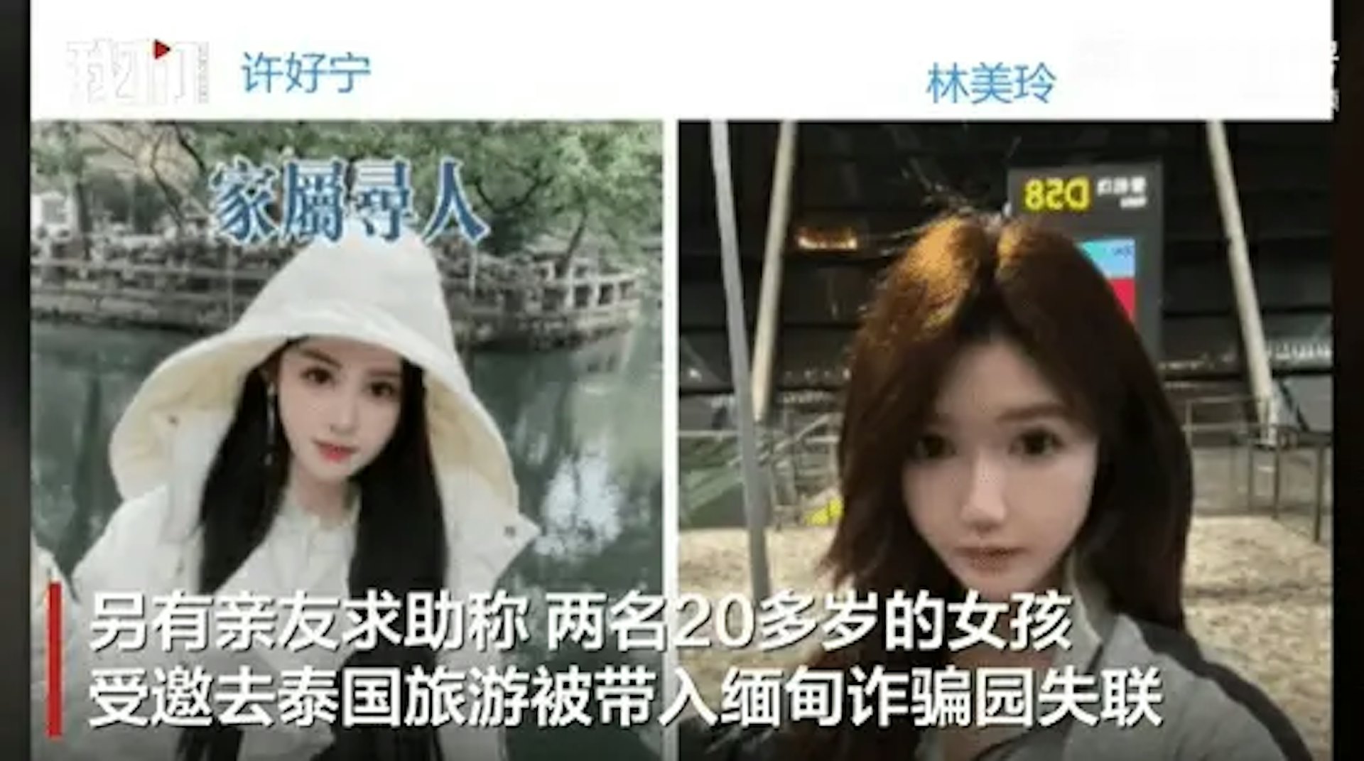 2 O9 ~# |3 y: e2 F- U據內媒《新京報》與《瀟湘晨報》報道,近日有家屬求助稱,有兩名20多歲的女孩於2024年12月27日受邀去泰國旅遊後,被帶入緬甸詐騙園後失聯。