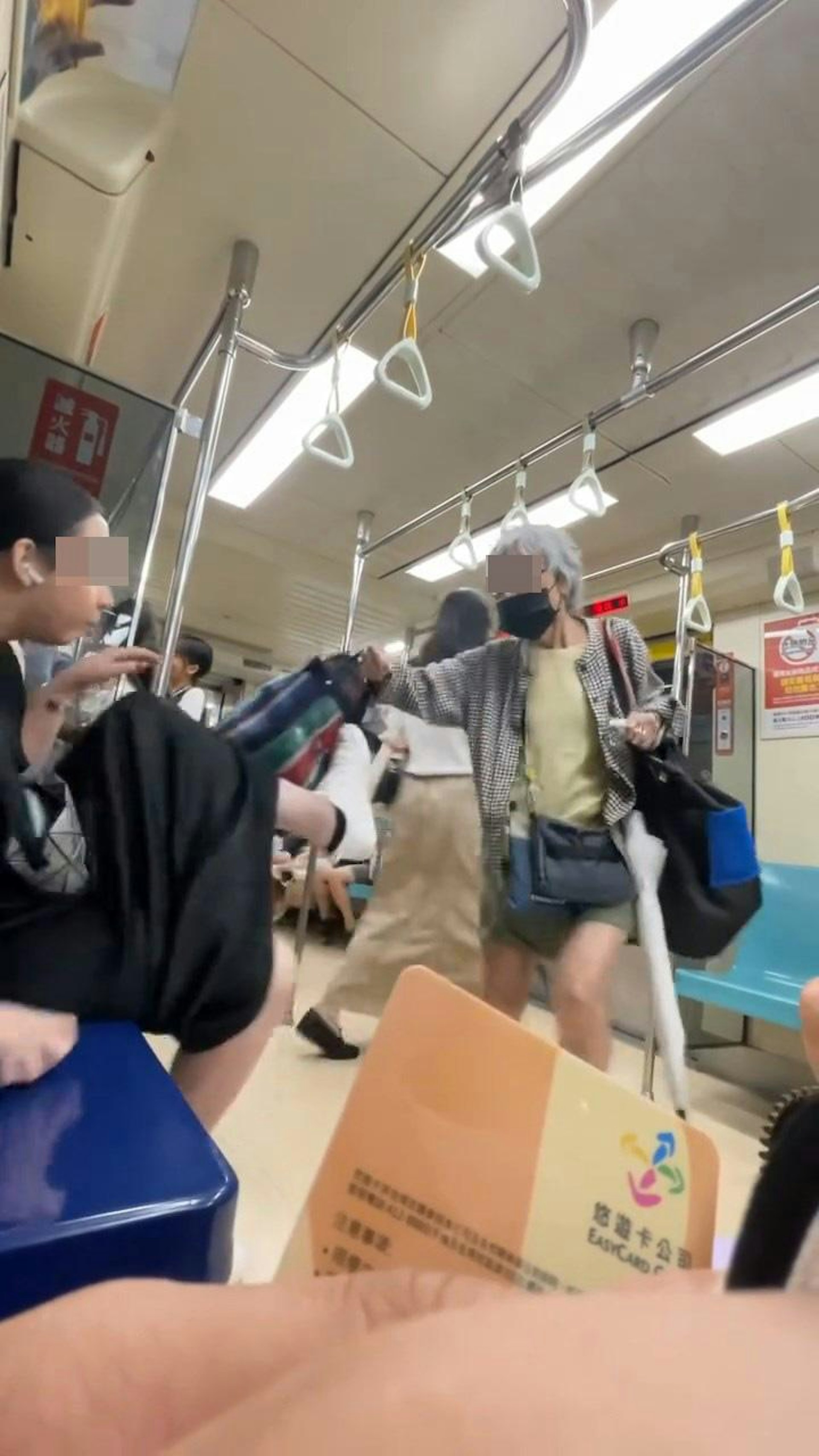 捷運當時還有很多空位,但阿婆堅持要坐在博愛座、穿裙子的「女子」讓座,並揮動手袋擊打「女子」膝蓋。(Threads@queen7_910)