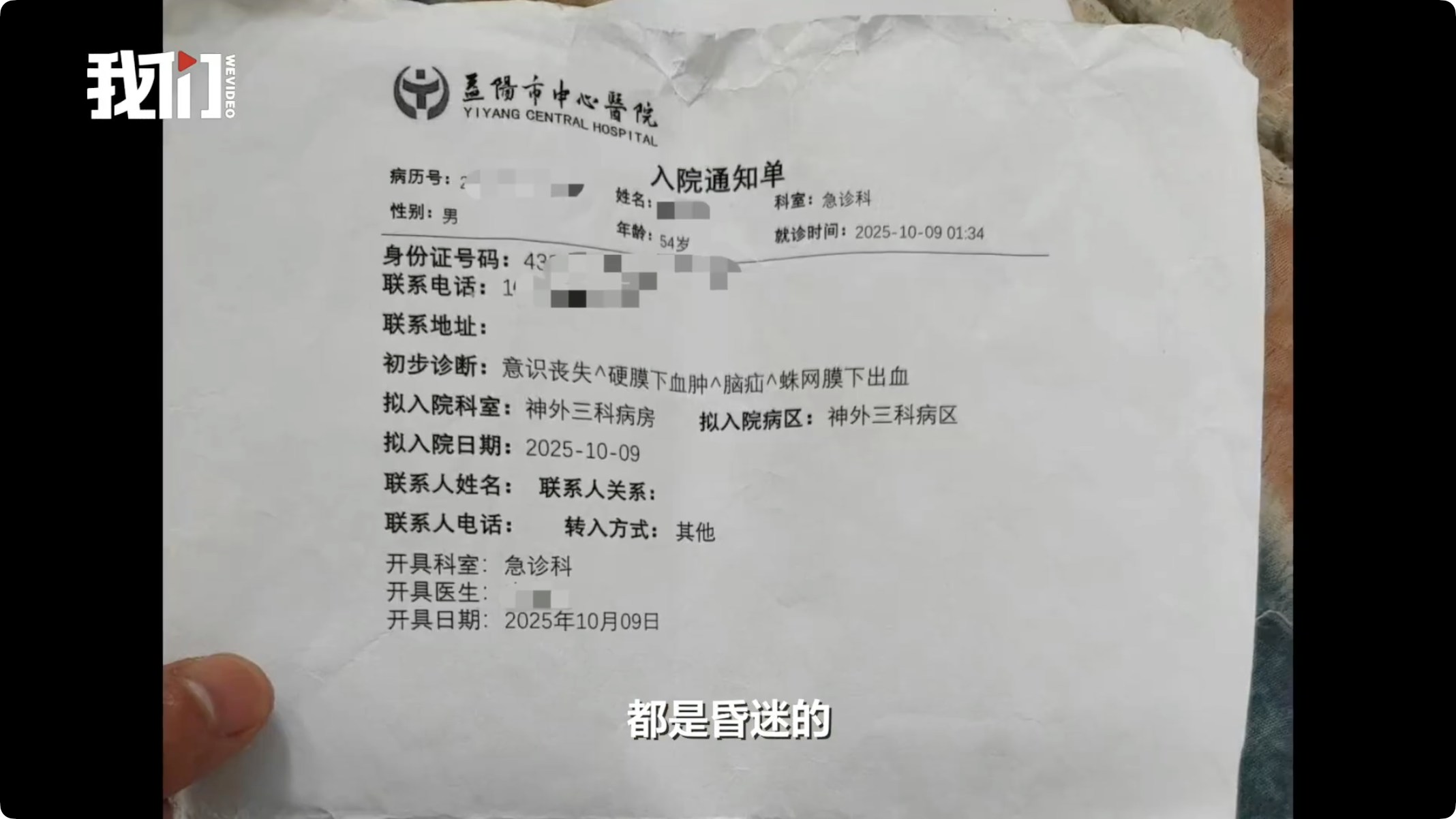 + E3 J6 y4 a3 _入院通知單顯示,李女士的弟弟入院時已昏迷。(影片截圖) K7 i( ^' r7 n' j) V6 {( F4 q0 B