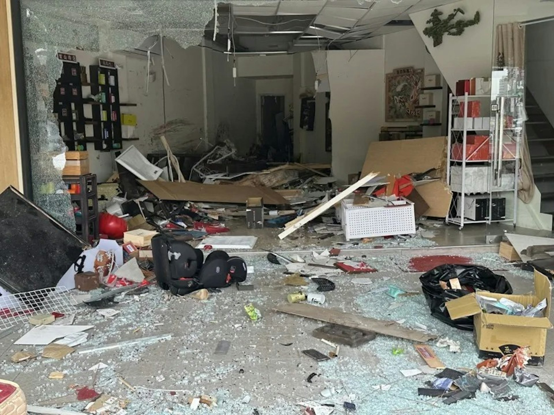 張表示,今年9月1日才從附近將店面搬過來,開幕至今1個多月店面遭撞毀,粗估損失2、300萬元(台幣,約合51萬到76萬港元),且店面內有大門、玻璃櫃,還有隔了一道牆,該輛BMW衝進來全部撞毀,還波及他們母子釀1死1傷,可見撞擊力道之大。公仔箱論壇9 Z% ?- @6 ]! l) V- H