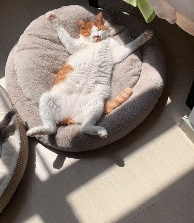 當然,有些小貓咪的喜歡睡貓窩的。瞧瞧多安逸,多舒服,多享受,這一刻就是幸福的具象化!(有喵青年提供)