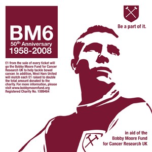 Bobby Moore Fund for Cancer Research UK to help tackle bowel cancer. In addition, West Ham United will match each £1 raised to double the total amount donated to the charity.