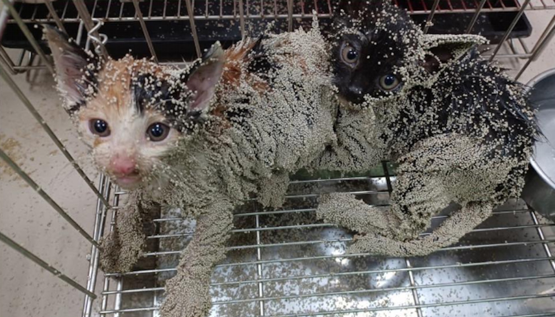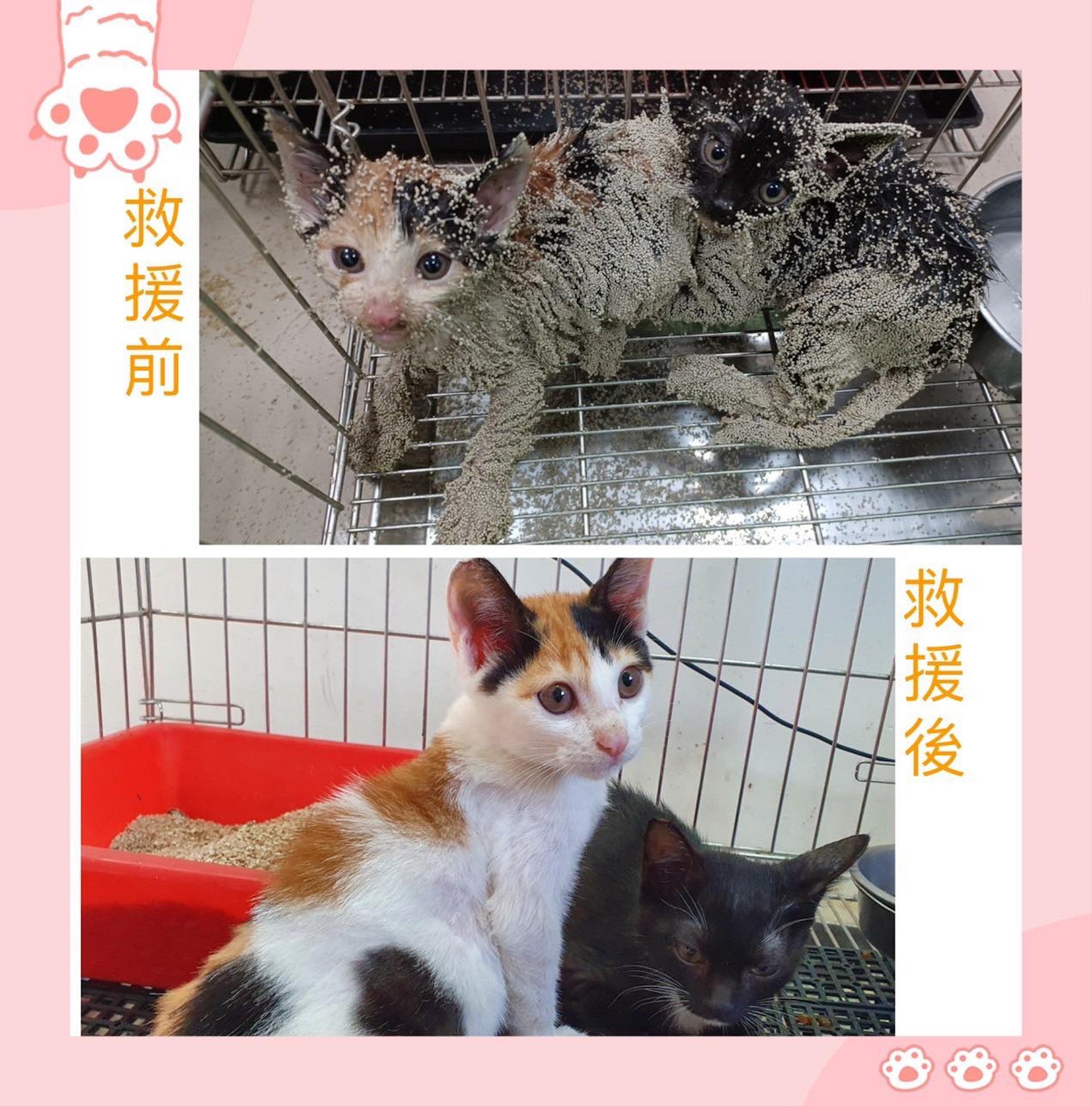 2隻黏膠小貓最終恢復正常萌樣(01製圖,FB@新北市政府動物保護防疫處)
