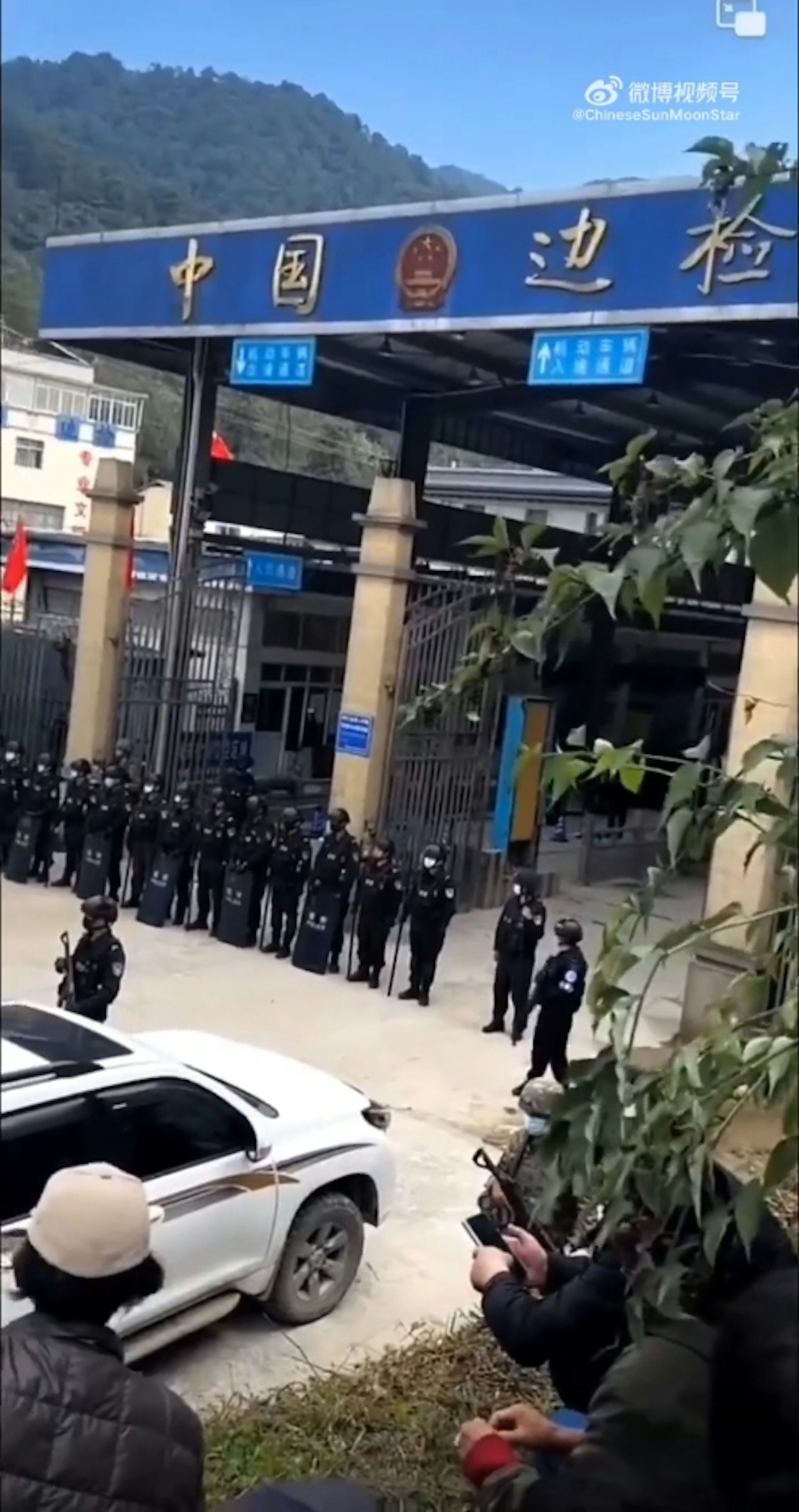 " G e3 ~2 n9 T$ K大批緬甸民眾在中緬邊境口岸聚集。(影片截圖)& i0 r8 T F7 F/ _4 \