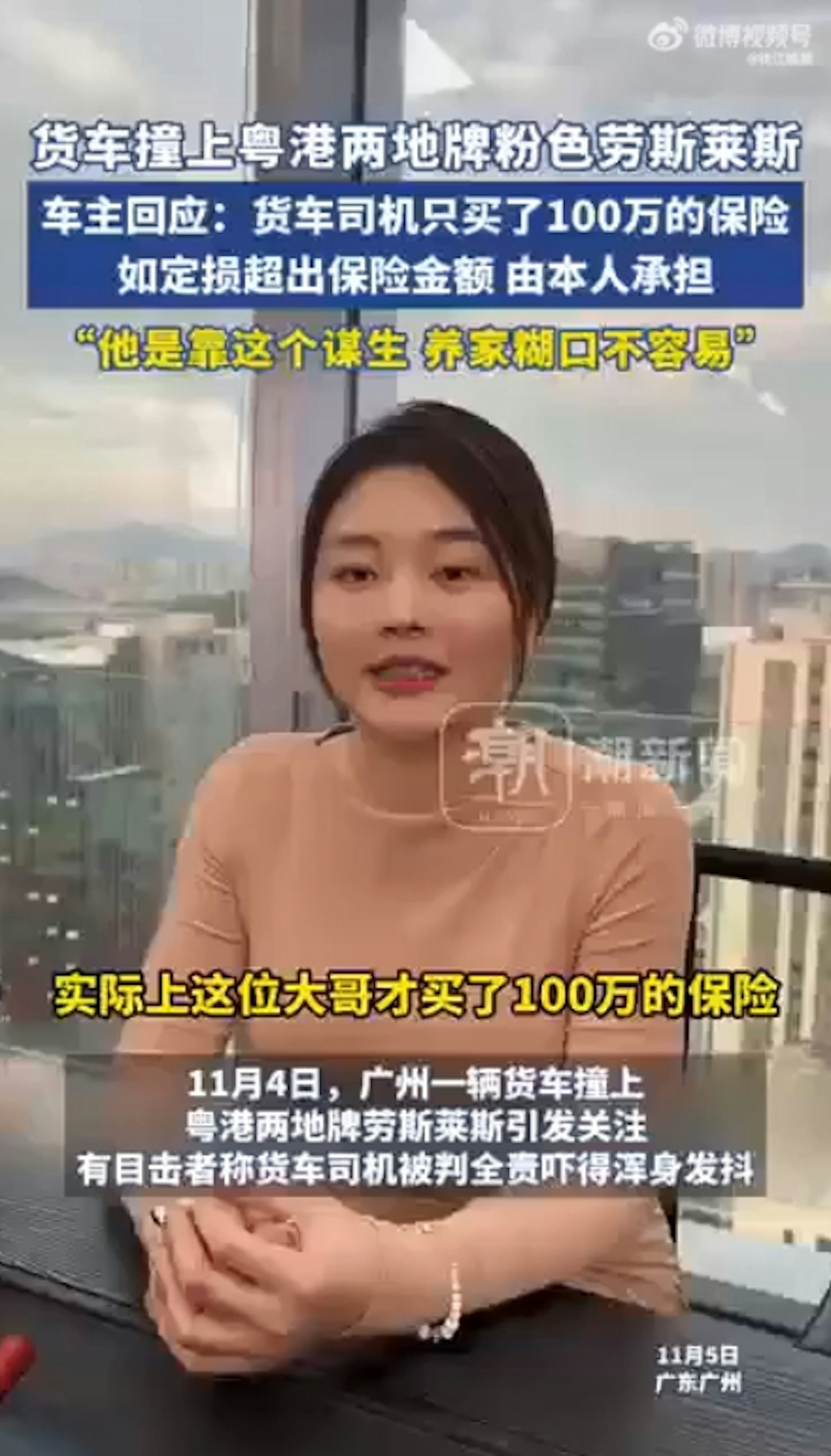 * v, Q4 }2 o! D: U. R% ?5 g$ {TVBNOW 含有熱門話題,最新最快電視,軟體,遊戲,電影,動漫及日常生活及興趣交流等資訊。朱小姐駕中港牌勞斯萊斯在廣州遭貨車猛撞,卻表示如超出對方保險的金額由她承擔,獲網民大讚人美心善。(微博影片截圖)