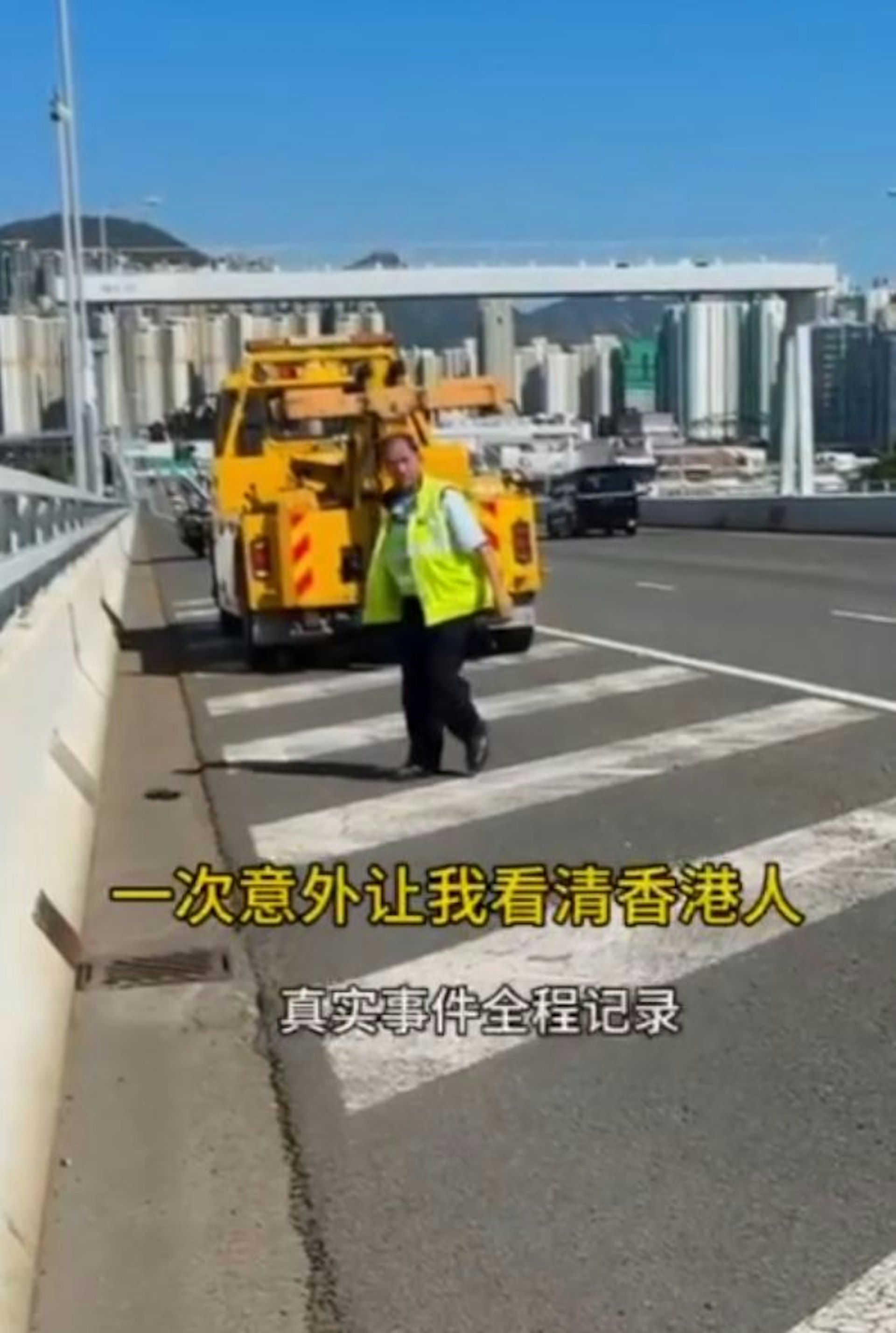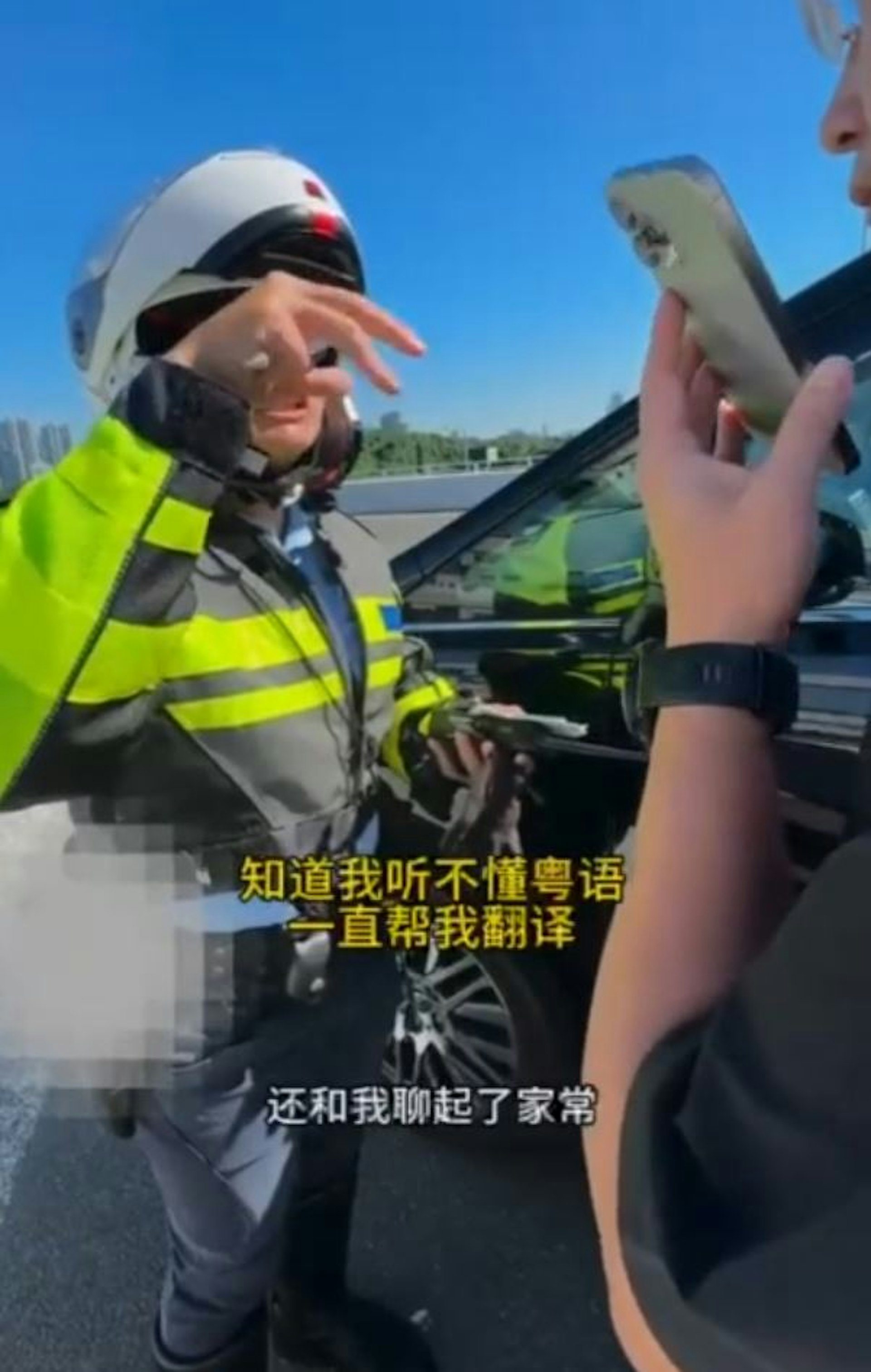 當時,高速公路車來車往,就在男子徬徨無助時,一位女警正好路過,立即指導他安全撤離到車後並協助聯繫拖車。得知他來自江蘇、聽不懂粵語後,女警還主動幫他翻譯,並在他一時不留神險走出公路時及時提醒他,之後不斷提醒他要注意周圍的交通,直到拖車到達,女警才離開。