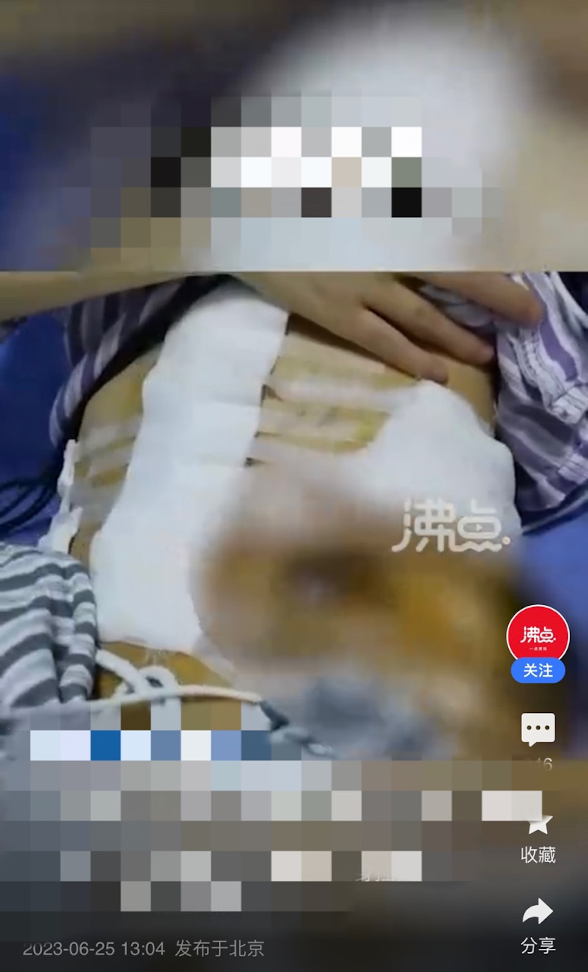 女子結婚2年被丈夫家暴16次,致多臟器損傷,需終身掛糞袋。(圖 / 沸點視頻)