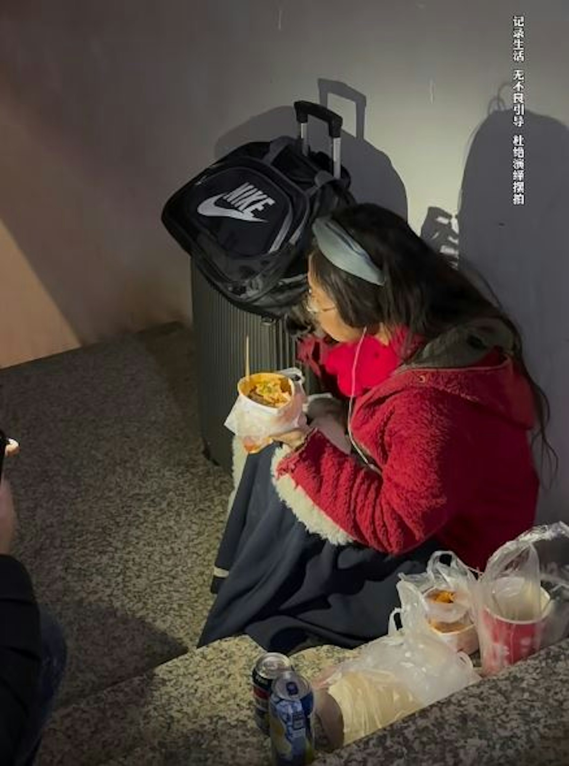 該影片由小紅書博主「星星之火照亮前方」發布,記錄了博主在深圳布吉遇到這位流浪女子的情況。片中,該女子披頭散髮,頭戴髮箍和眼鏡,獨自拖著行李箱等,欲在小食檔前欲購買食物。博主試圖幫助她,經過一番努力後,她終於接受了提供的食物和金錢。5 c* H% A0 r6 W