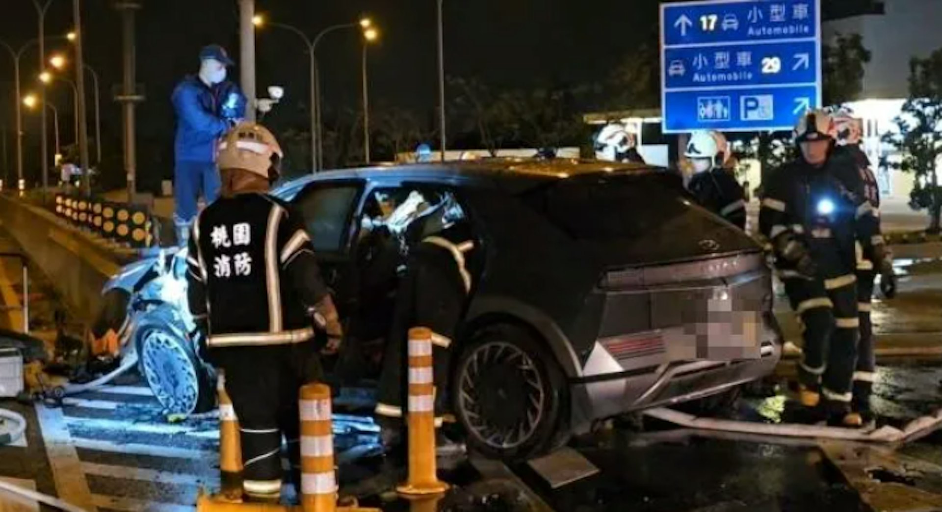 ! E/ P" C3 ~* g( b5 @ z台灣桃園市一處高速公路昨日(25日)晚間7點多發生電動車車禍,一名男子駕車帶著妻子與6名兒童返家過年,卻發生自撞起火,造成4死4傷悲劇。