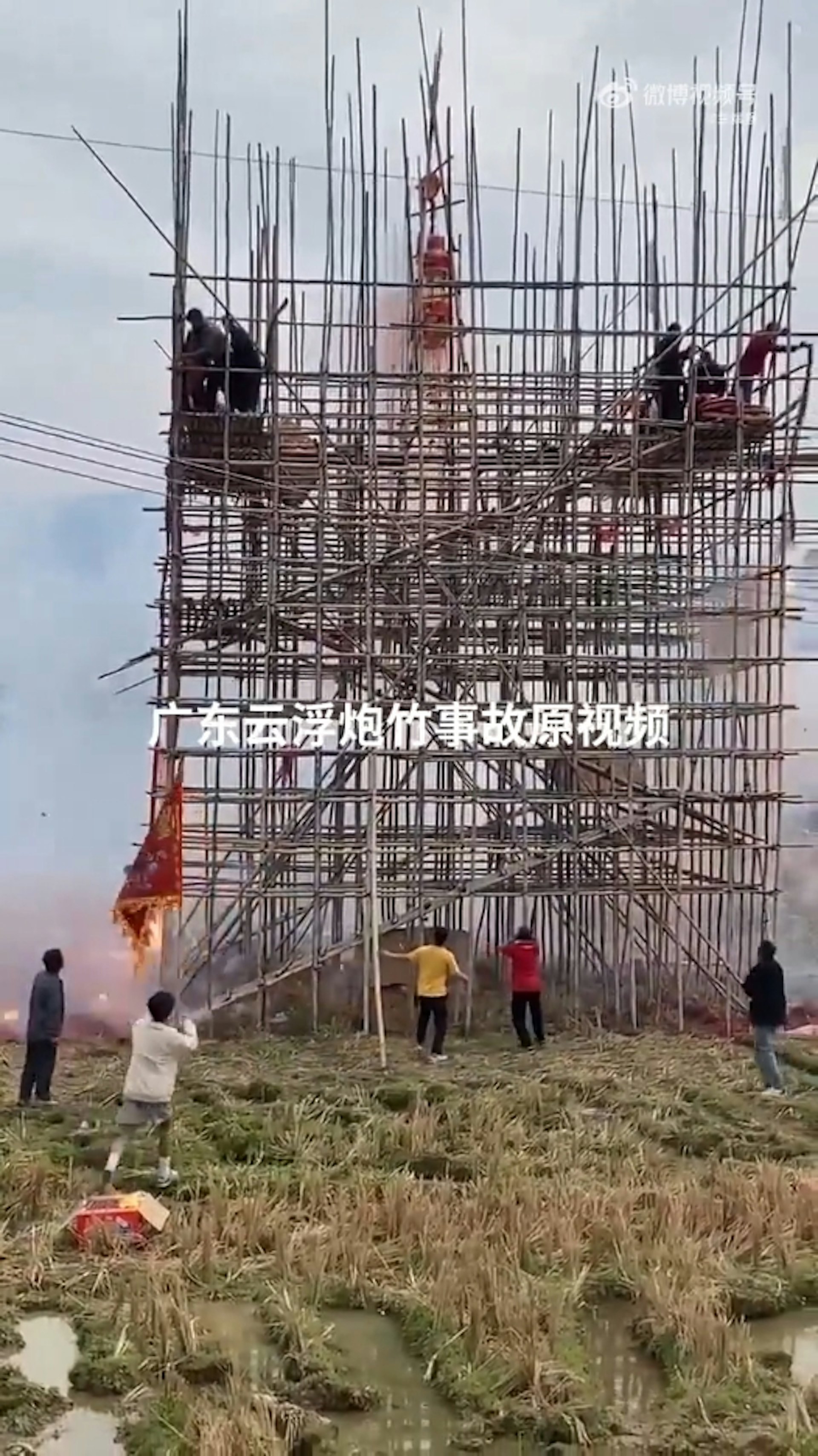蔡先生表示,當天是在「燒炮」,有村民在「炮台」上拿着爆竹燃放,可能因燃放太快,爆竹脫手後引燃了炮台上其他爆竹。「炮台」最高處約有20米,事發點高度近10米,幸好是搭建在鬆軟的土地上,若是硬地面,從半空跳下的幾人可能傷得更嚴重。