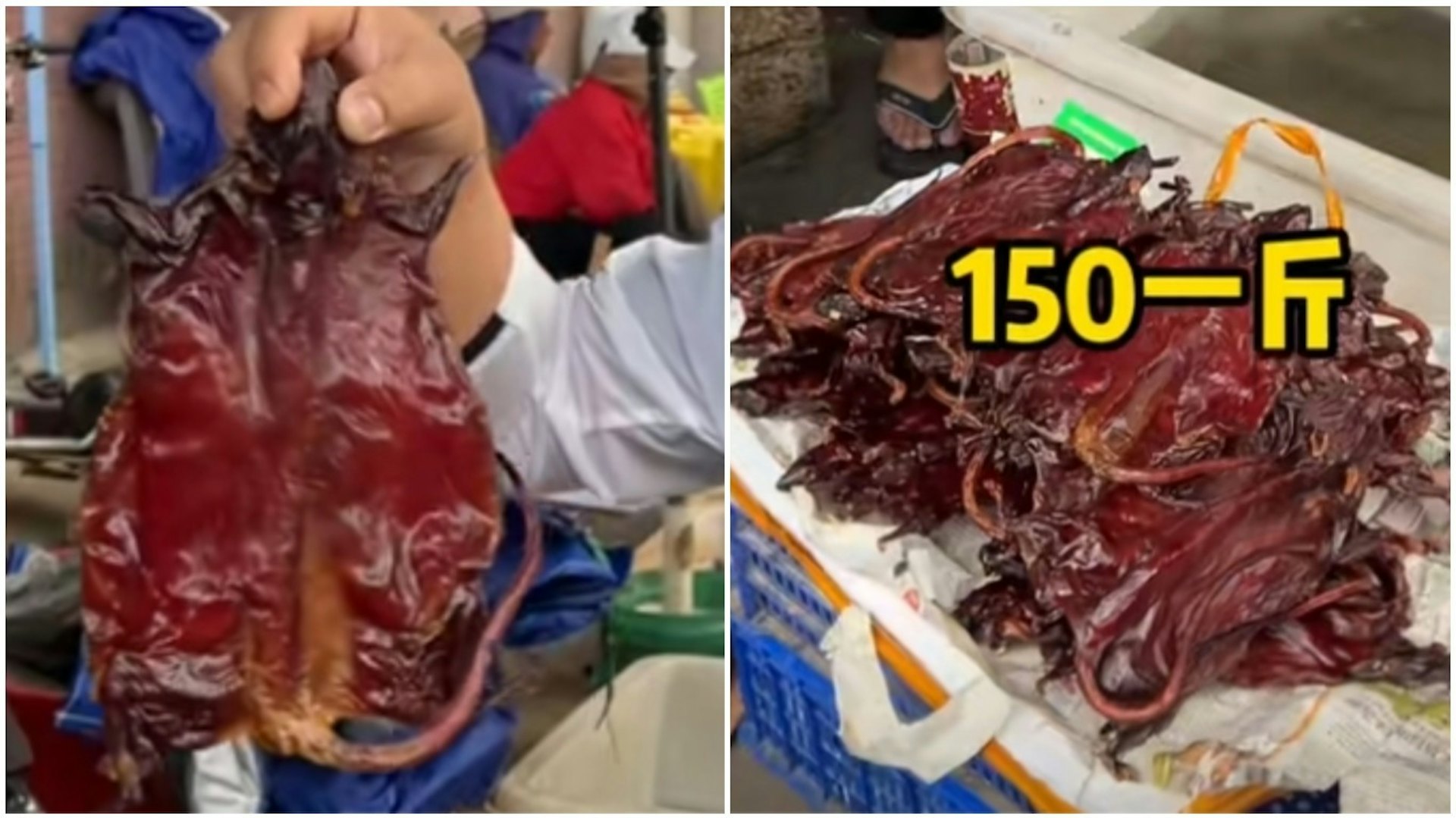 @' h- T3 G6 d, l7 i5 e" N) N佛山一個街市有售賣老鼠乾,相關影片在內地受到廣大關注。(影片截圖)