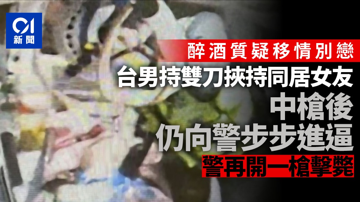 0 j9 m. C- R& u& E8 C- u5 B% \tvb now,tvbnow,bttvb台灣苗栗縣頭份市周五(18日)凌晨發生重大刑案,一名49歲蔡姓男子因感情糾紛,竟持兩把菜刀挾持同居女友,並一度與警員對峙。最終,蔡男不聽從指示繼續持刀逼近警員,結果遭到警員開兩槍擊斃。