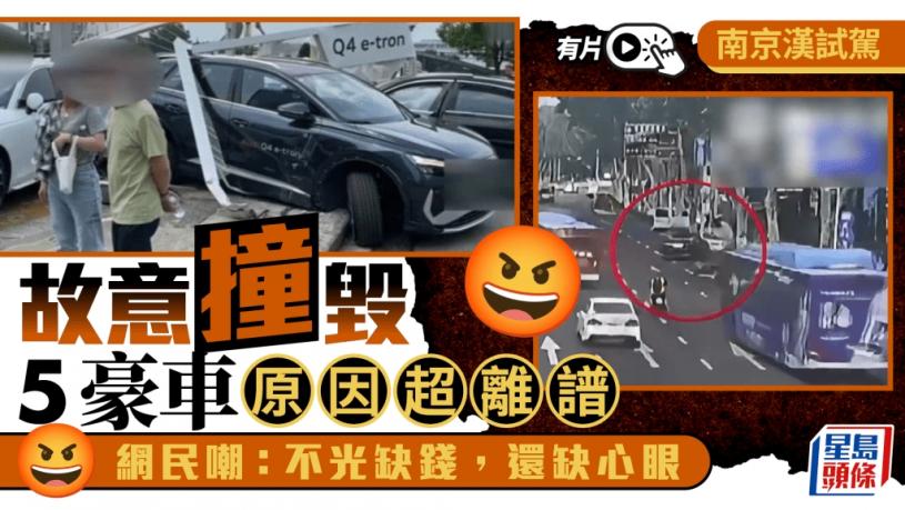 ( L1 s7 b* ]6 s' M0 _' r6 I江蘇南京有男子,早前連續兩日到車店試駕奧迪(Audi)和Benz,卻先後撞毀共5輛車及展示台,損失近80萬人民幣。經警方調查,男子原來故意試駕豪車追撞其他車輛,目的是在車廠以職代債當搵工。網民紛紛指責疑犯不僅缺錢缺工,更可怕是缺腦袋。3 ]7 \3 v9 [' s% \7 c) }