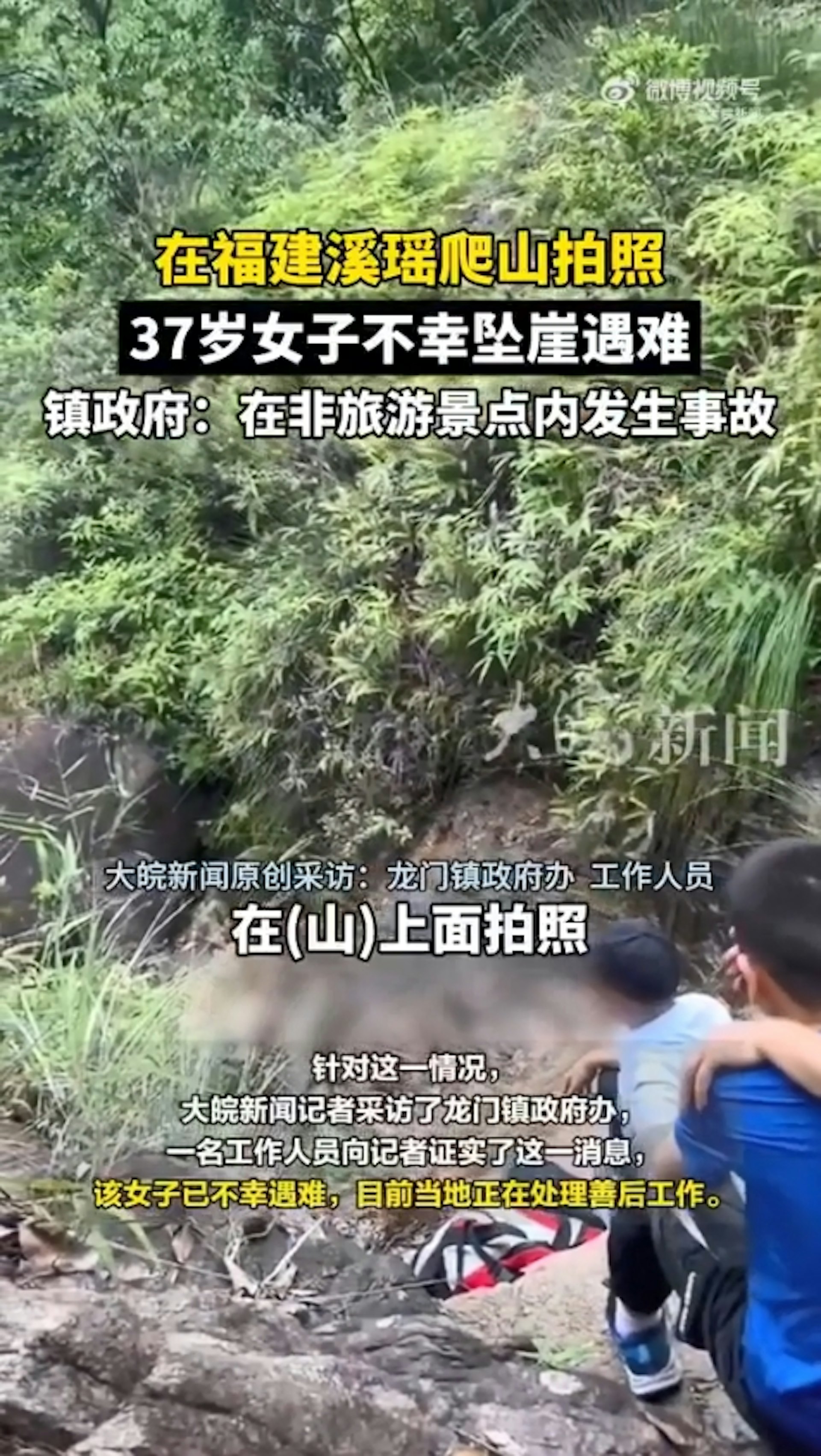 據現場目擊者稱,墮崖的女子是跟團遊,當天帶兩個兒子過來爬山,事發地點位於一處較高的山崖,影片中兩個男孩目睹母親遇難後,當場崩潰痛哭。