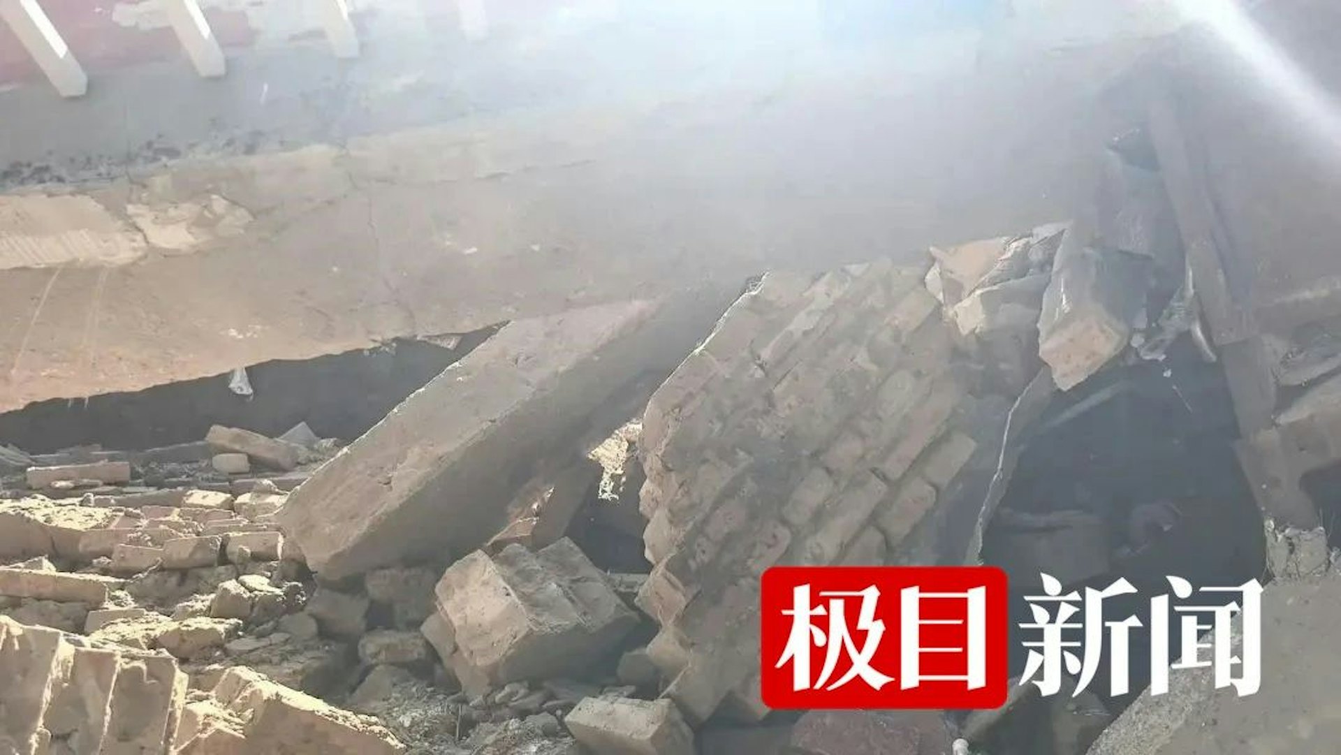 , P- U9 V" B4 I% z3 a! H% a學校圍牆倒塌。(極目新聞)