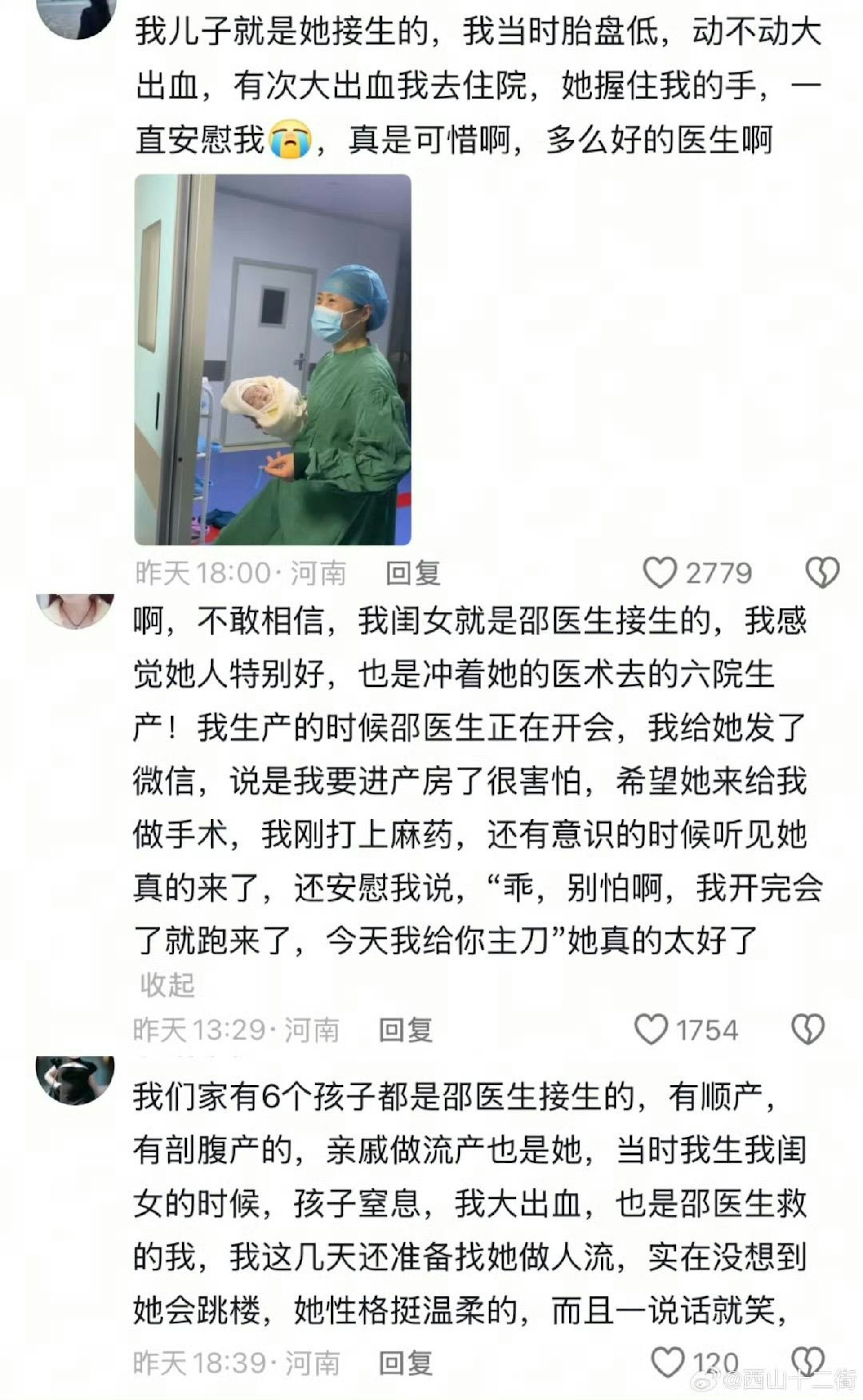 7 e, N0 {1 [5 M" M F. x5.39.217.77有網民分享,去年她生孩子就是邵主任做的手術,在打麻藥時因為害怕全身發抖,邵主任進來看到,雙手抱著她的頭安撫,又溫柔又讓人放心。也有網友留言稱,邵醫生人特別好,當時她胎盤低大出血住院,邵醫生一直握著她的手安慰,想著生二胎還去找邵醫生,知道邵醫生去世真的特別難受。