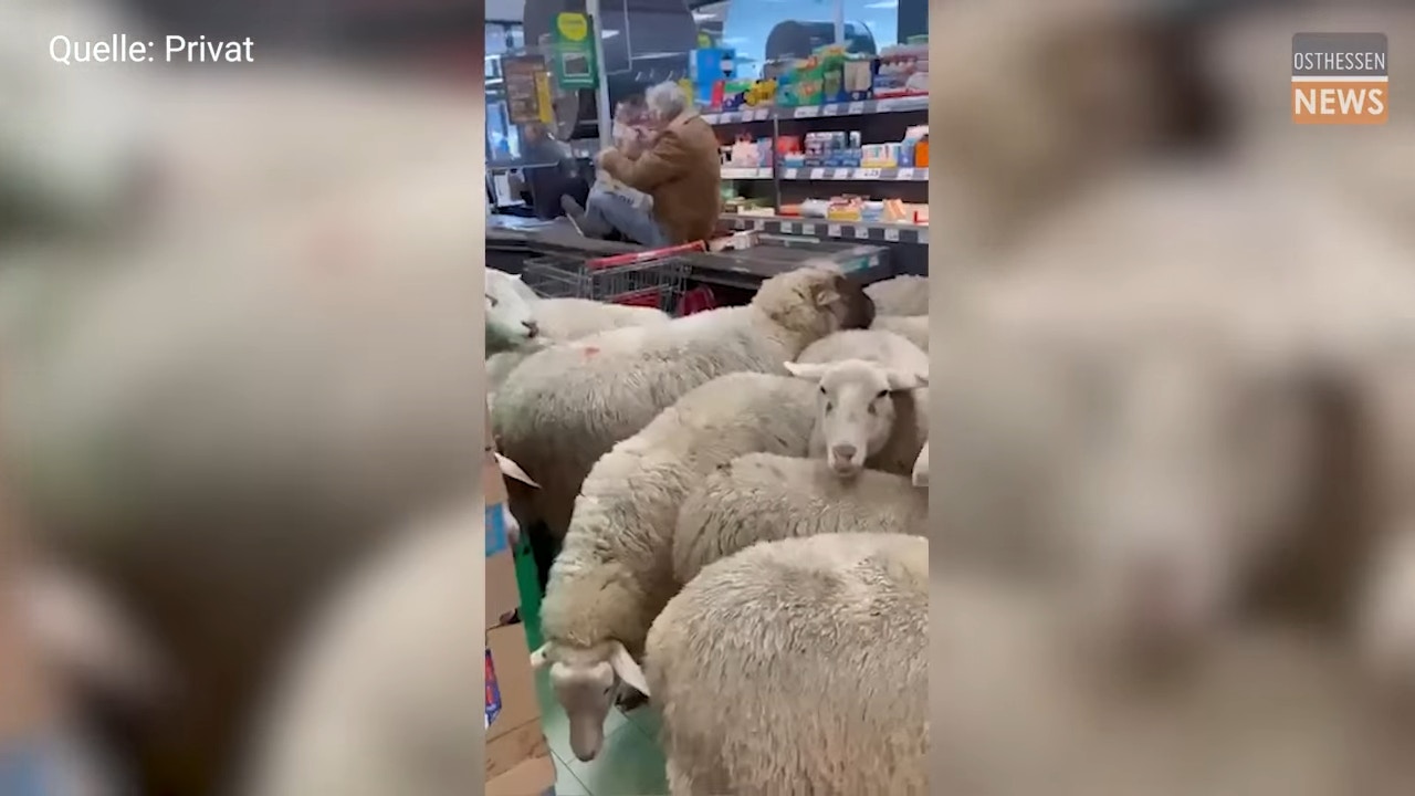 德國巴伐利亞當地一間超市發生離奇事件,突然有50隻羊闖進超市中,把超市擠得水泄不通,還撞倒許多貨架和物品,嚇壞店內顧客與店員,驚奇畫面在網路上瘋傳。(截取自YouTube@osthessen-newsde)