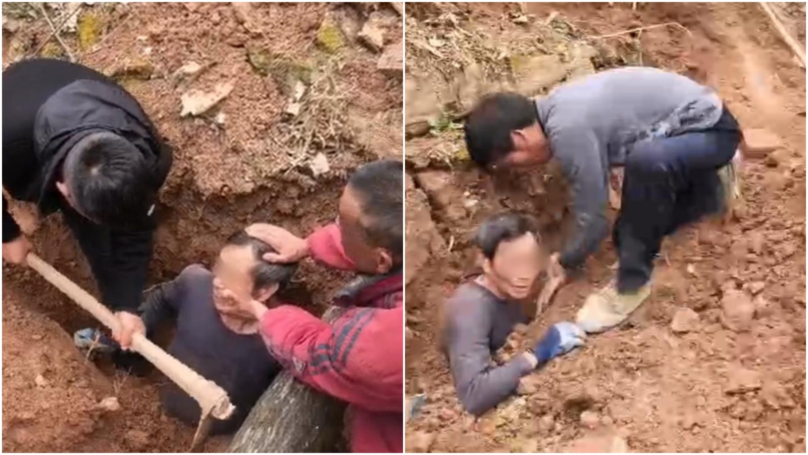 3月3日元宵節,陝西旬陽市關口鎮泥溝村59歲村民郭師傅在自家院壩挖地基時,遭遇約2立方米早年回填土塌方,被土方完全掩埋,只剩頭部露出。危急時刻,鄰居李先生帶領兒子、親家及其他十幾名村民趕到現場,徒手與工具並用,經過約90分鐘有序救援,成功將郭師傅救出。事發影片在網上廣泛傳播,引發網民熱議與點讚。3月7日,李先生與郭師傅先後接受內媒採訪,還原了當天驚險一幕。