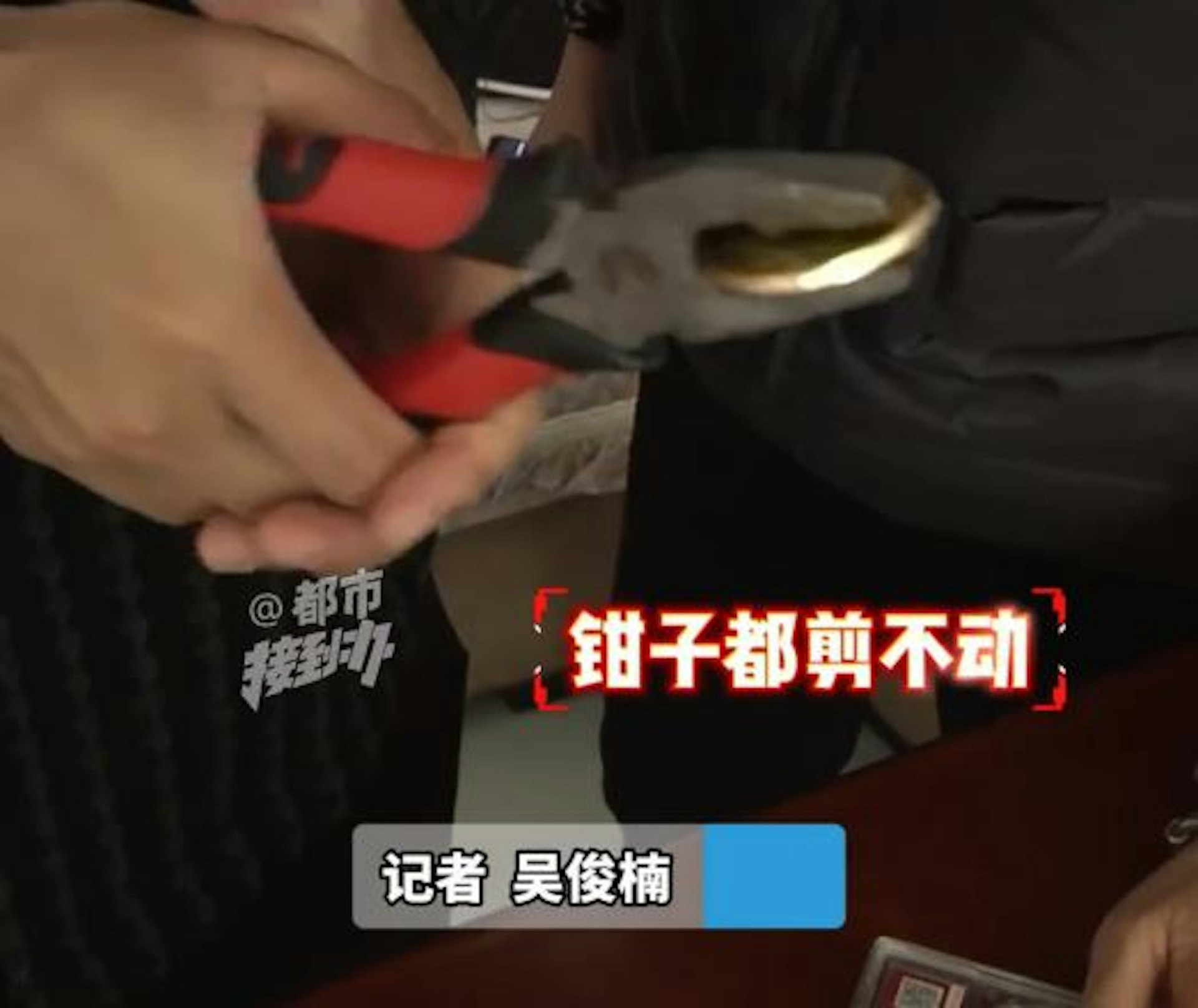 $ w( N0 L4 r0 k* o公仔箱論壇金幣質地很硬,連鉗子都剪不動。(截取自微博@都市接到辦)公仔箱論壇* {3 a2 j1 t" [4 x& o% v" z# R( r