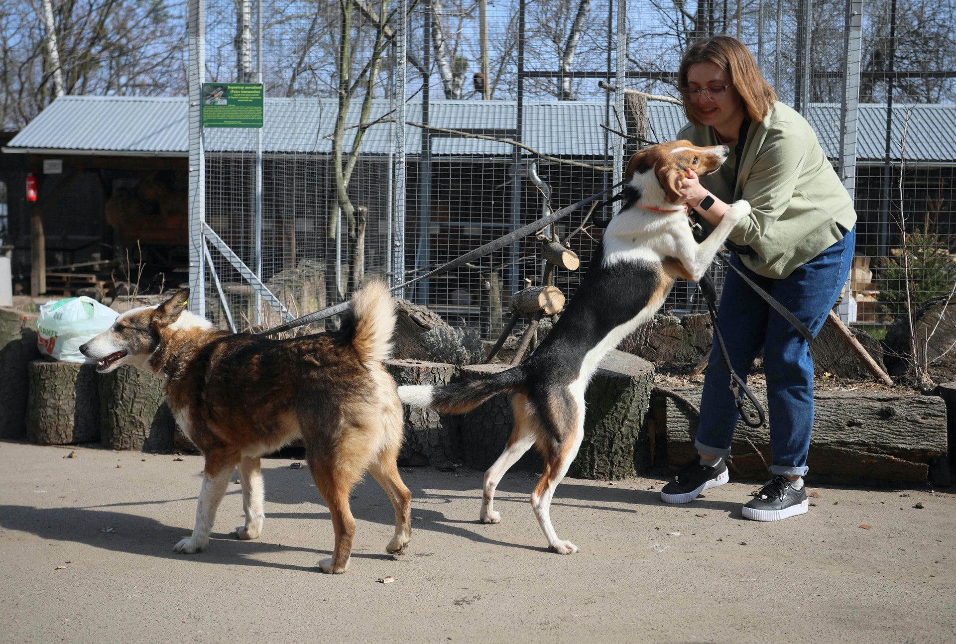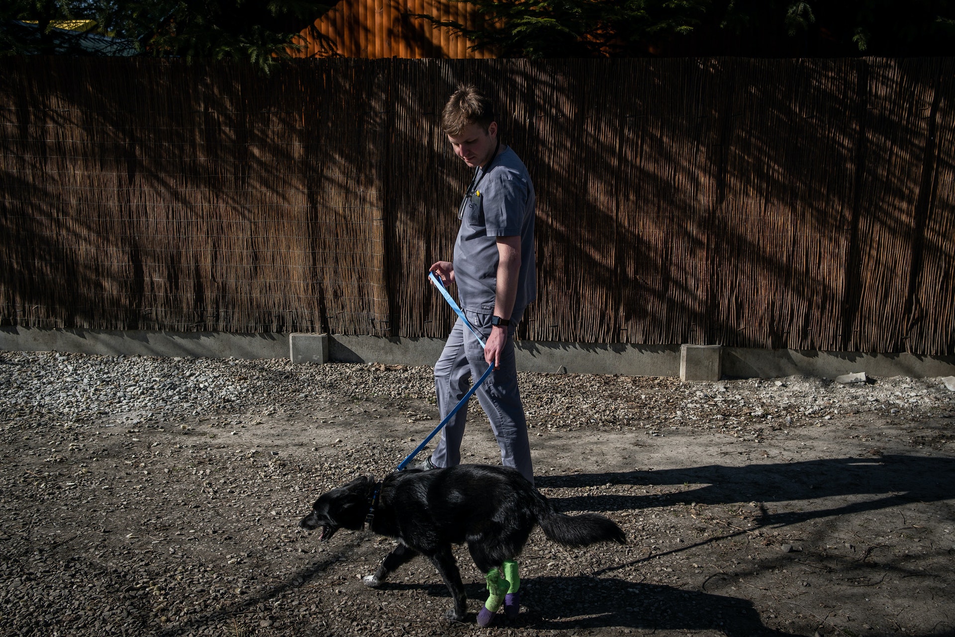 Jakub 放下了貓,又帶一隻他救治的狗出外散散步。(視覺中國)