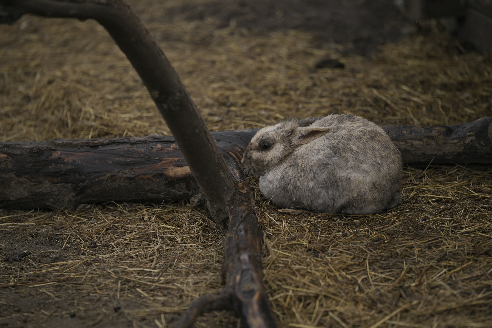 一隻兔子在私人動物園中瑟縮在一角。(Vadim Ghirda/美聯社)