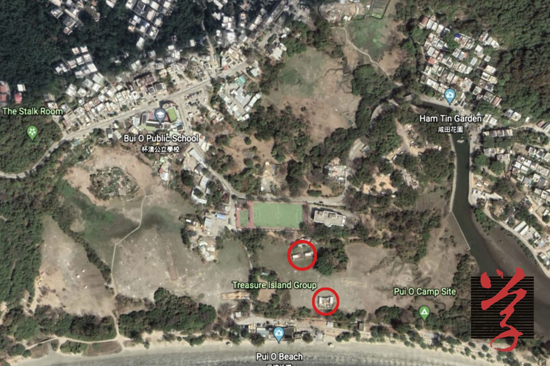 貝澳濕地有乾涸跡象,紅圈處是違規興建的度假營。(Google Earth影像/大學線授權使用))