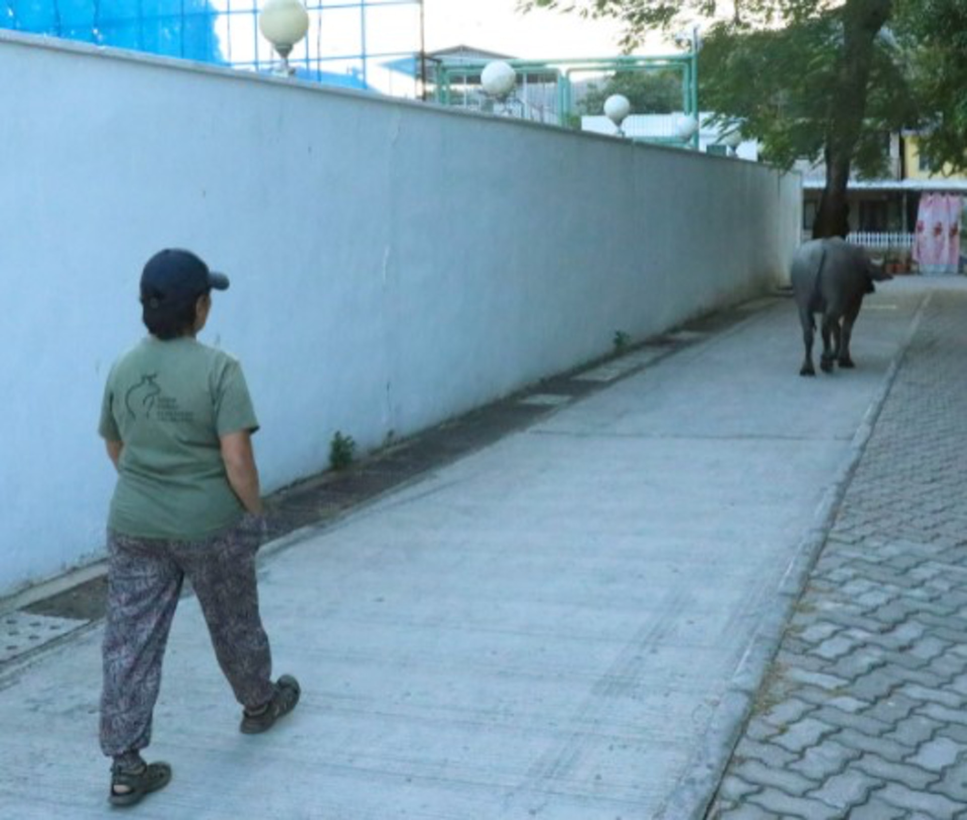 水牛在停車場徘徊(李楚倩攝/大學線授權使用)