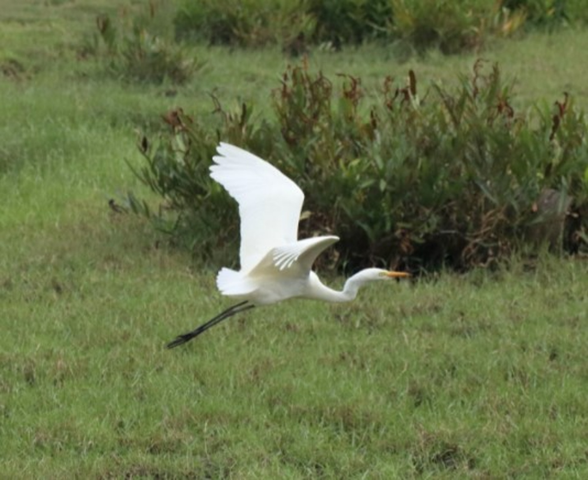 白鷺在手牛所在沼澤附近低飛徘徊,盡顯濕地的物種多樣性(李楚倩攝/大學線授權使用)
