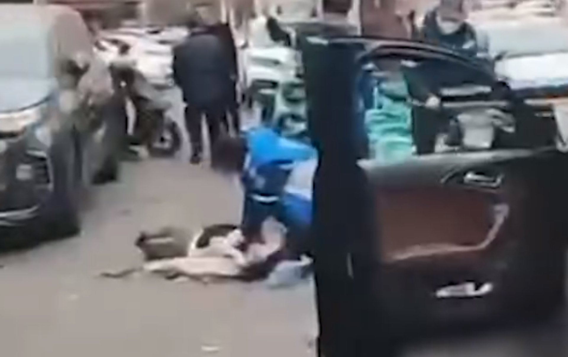 有急救人員蹲在路邊為傷者做心肺復蘇急救。(影片截圖)tvb now,tvbnow,bttvb" w, Z( T5 F- F" Z Y J