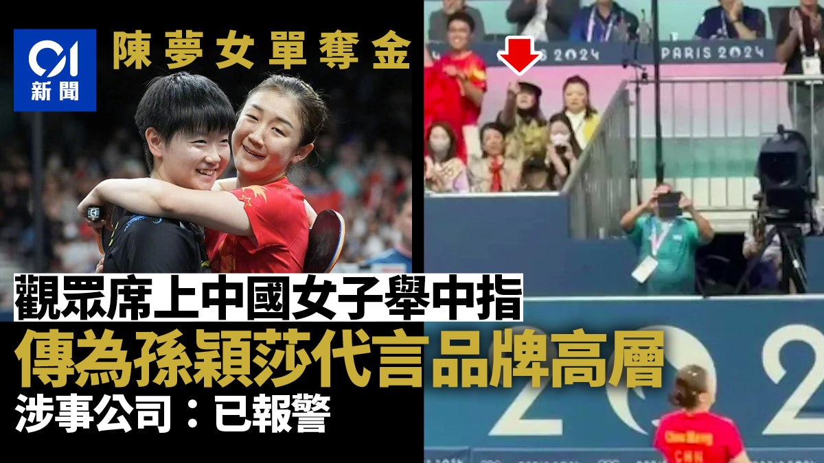 巴黎奧運乒乓球女子單打決賽中,中國隊包攬金、銀牌,陳夢4比2擊敗孫穎莎成功衛冕。惟比賽過程中,現場大量中國觀眾一邊倒為孫穎莎加油助威,陳夢奪冠後更有看台上的觀眾對她「豎中指」,網傳涉事觀眾為伊利員工。對此,伊利方面否認相關傳聞,並指已經報警處理。
