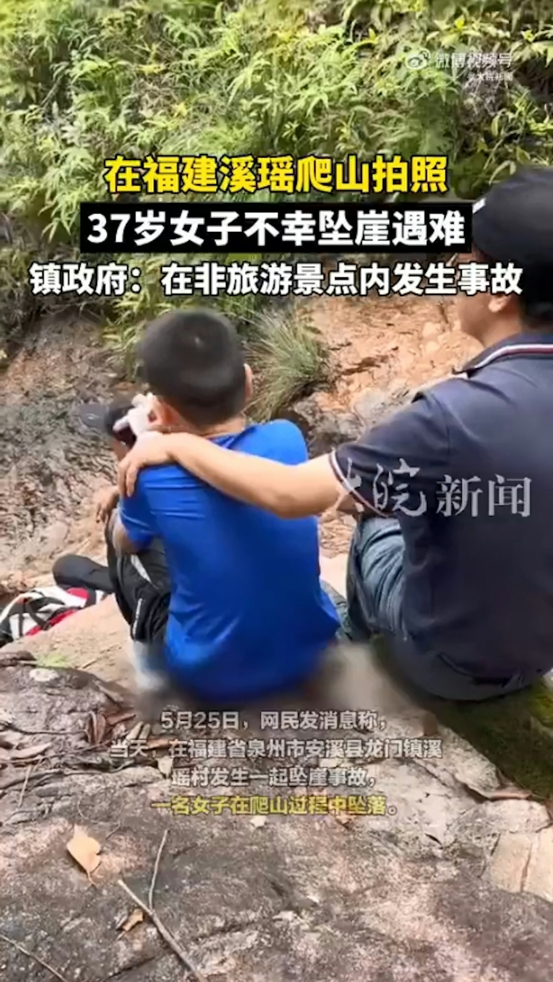 一名女遊客周日(25日)在福建省泉州市安溪縣龍門鎮溪瑤村爬山拍照時墮崖,鎮政府辦公室人員證實女子已遇難身亡。有指女死者兩名未成年兒子目睹全程,失聲痛哭。
