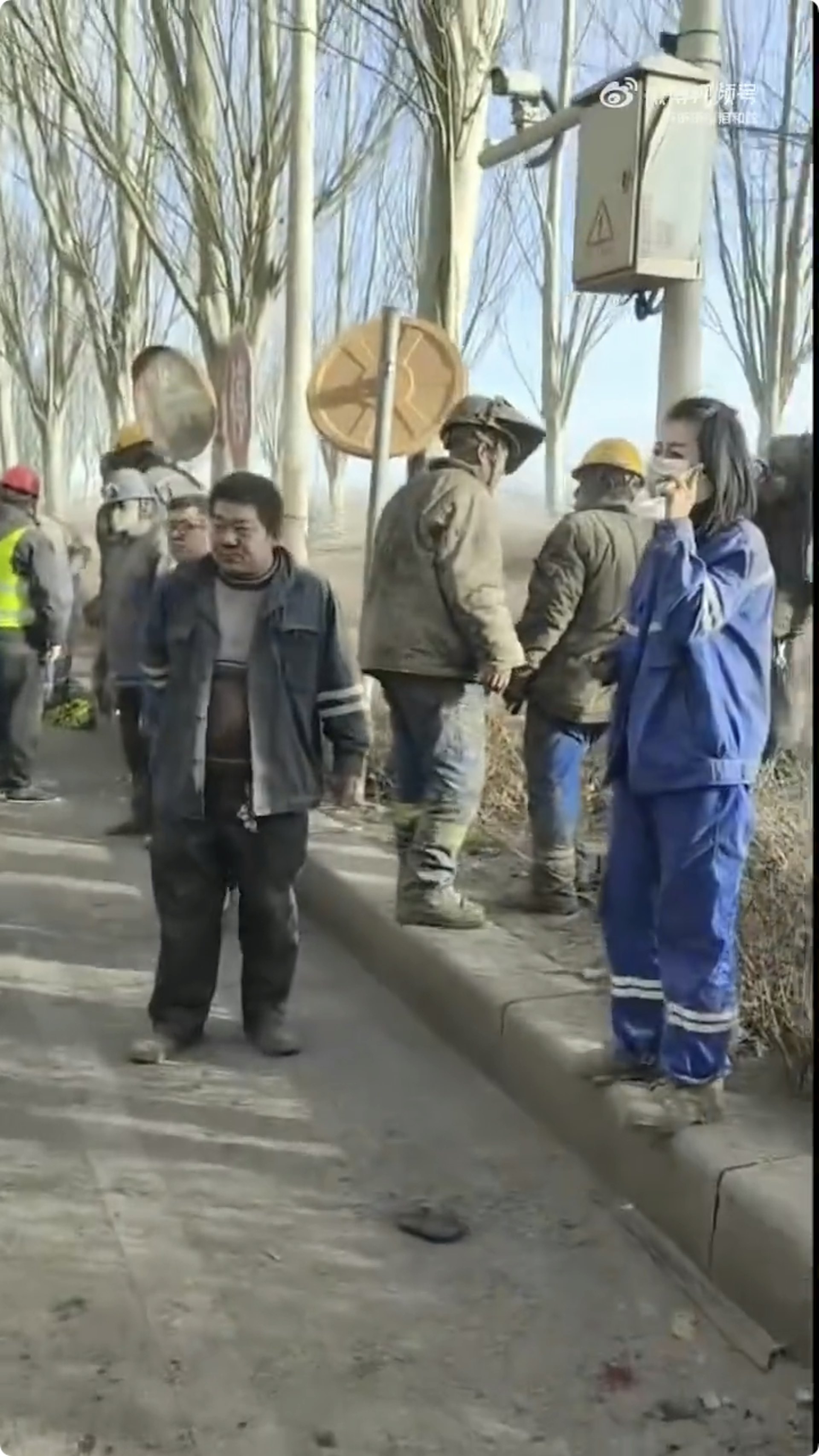 內蒙古包頭一廠區發生爆炸。大批員工在路邊等候救援。(影片截圖)