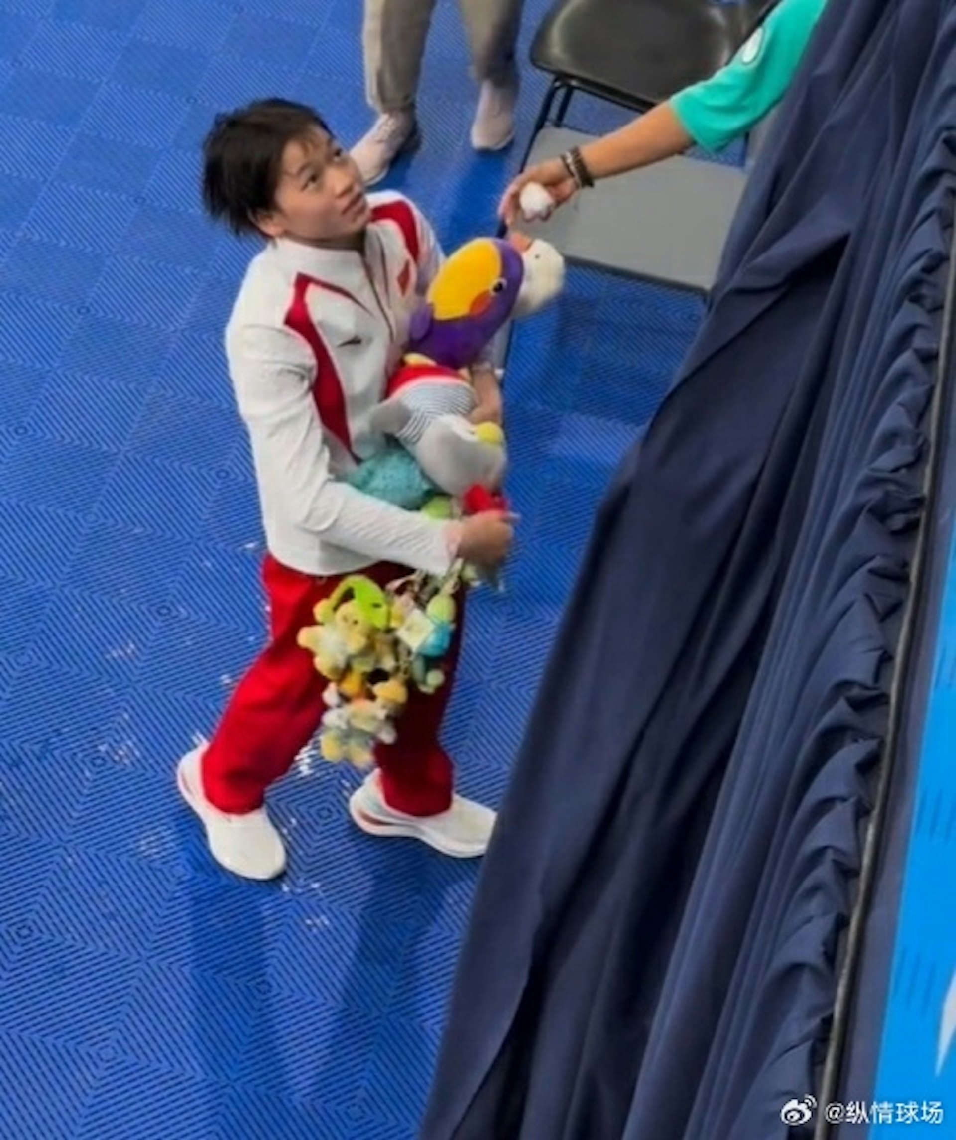 全紅嬋哥哥全進華悄悄來到巴黎為妹妹加油。(微博)