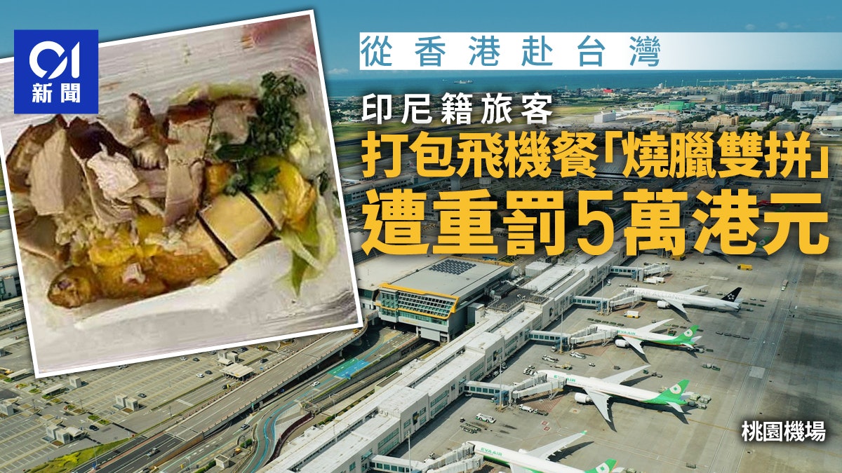 台灣政府強力防堵非洲豬瘟,未經申報攜帶豬肉入境可遭重罰。近日一名印尼籍旅客從香港搭機赴台灣,竟把飛機上的飛機餐「燒臘雙拼」打包帶下機,被機場的檢疫犬聞香發現,當場開罰20萬元新台幣(折合5萬1千元港幣)。但因該旅客無法當場繳納,直接被當局遣返回國,下次入境得先繳清罰款才可放行。