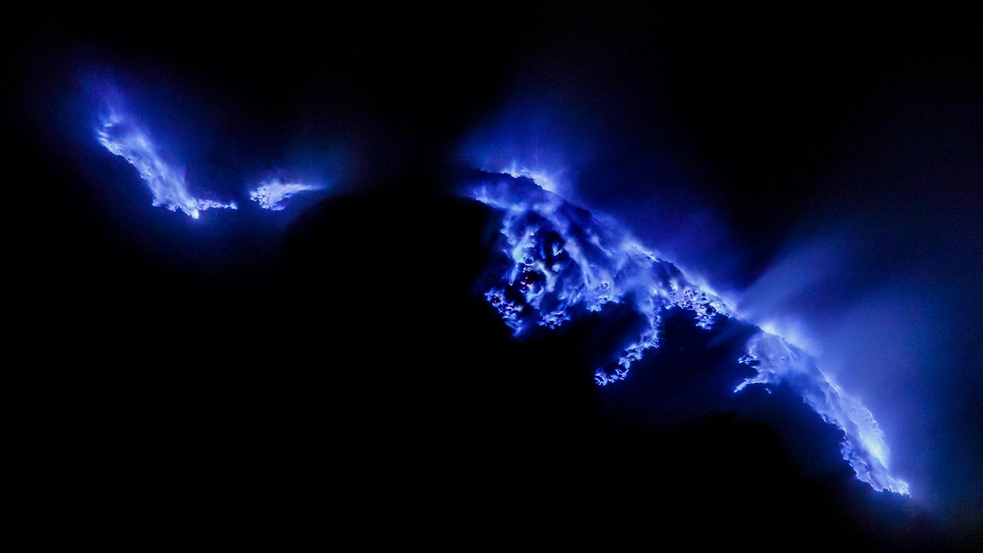 這個「全世界唯二能看見藍色火焰的地方」迷倒不少遊客,不少人在凌晨出發、徒步數小時,戴着防毒面具走下去到火山口的硫酸湖邊,只為一睹稀罕的藍色火焰。