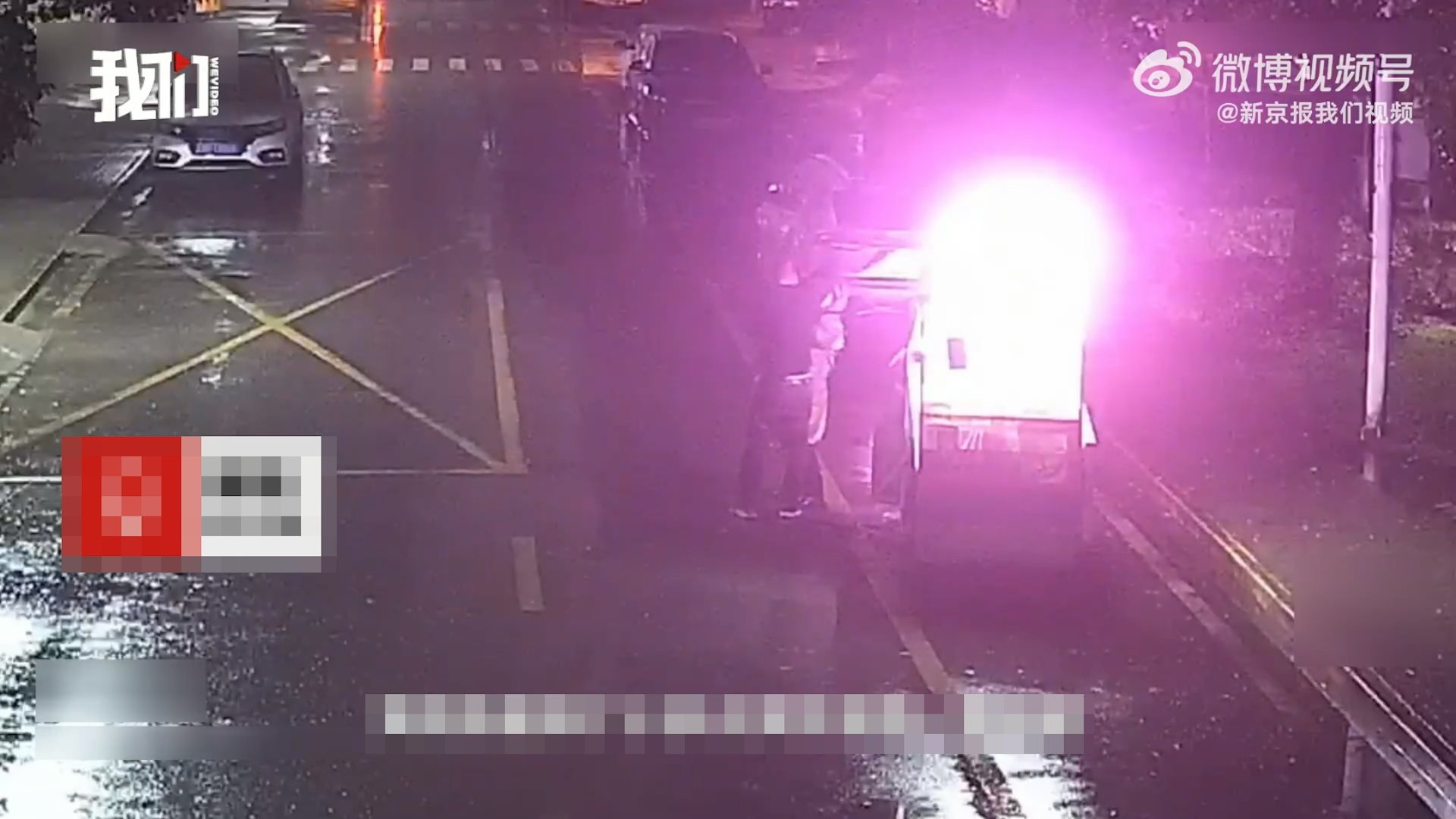 江蘇江陰一名6個月大的男嬰,日前雨夜爬上公路,十分危急關頭,幸得經過的熱心民眾抱起,才未有釀成大禍。(影片截圖)