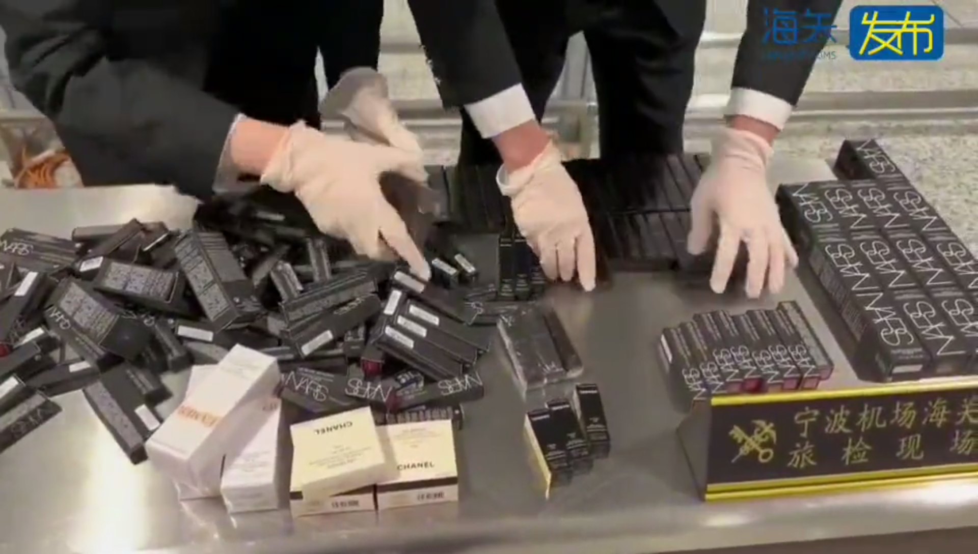 & k: o/ K" w0 S |tvb now,tvbnow,bttvb一名男子攜帶大量化妝品入境,被浙江寧波海關檢獲。(海關發布)