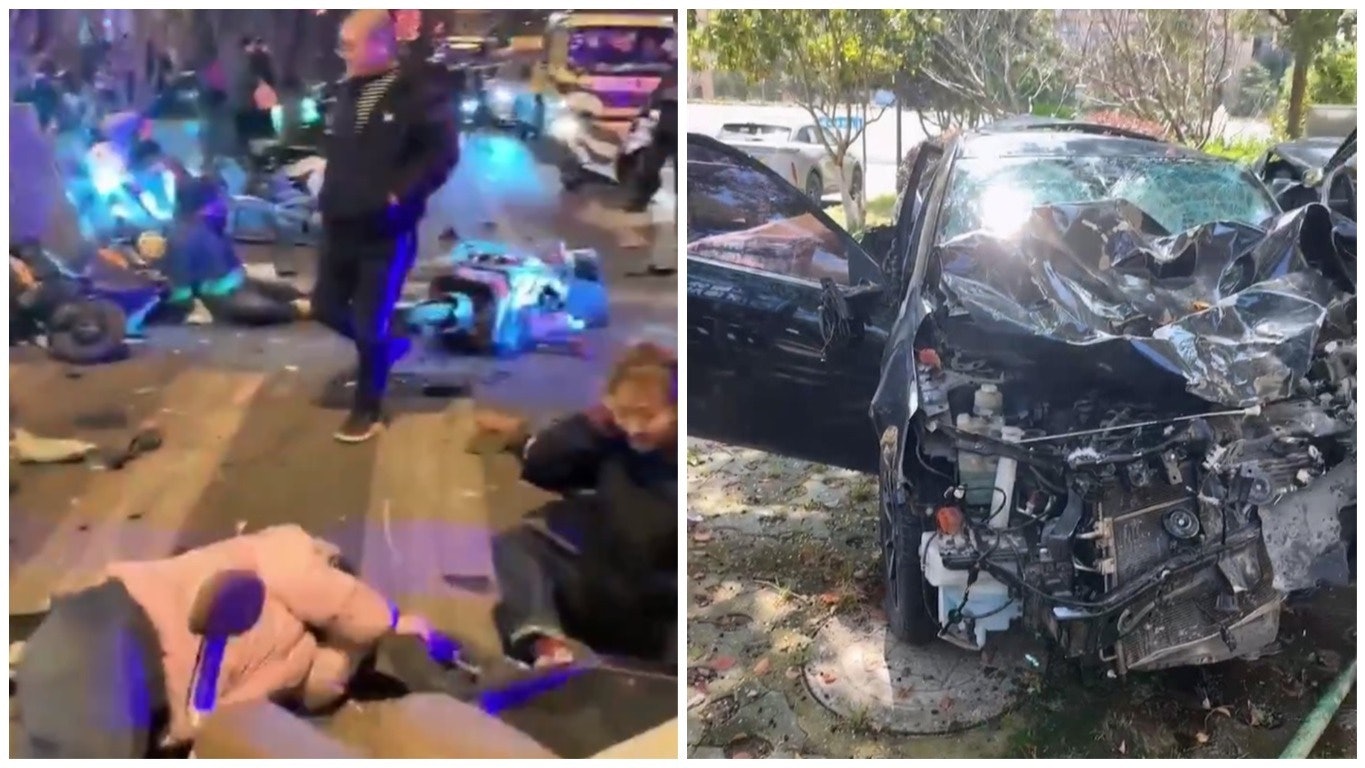 據現場影片顯示,一輛黑色私家車逆行衝入對面人行道,被撞傷者四散躺在道路上,有急救人員蹲在路邊為傷者做心肺復蘇急救。多輛車輛受損嚴重,電單車被撞碎,各類玻璃雜物碎片散落一地。