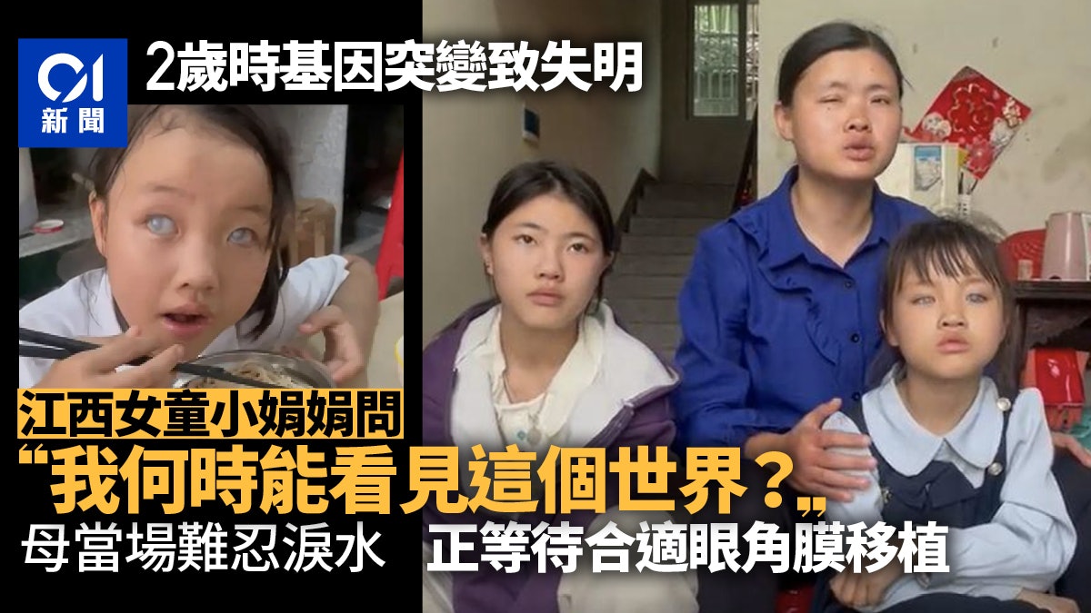 江西女童小娟娟(化名)2歲時因基因突變導致視力喪失,從出生健康到突如其來的失明,讓家人都非常不捨。目前小娟娟正在等待合適的眼角膜,等待重見光明的希望。