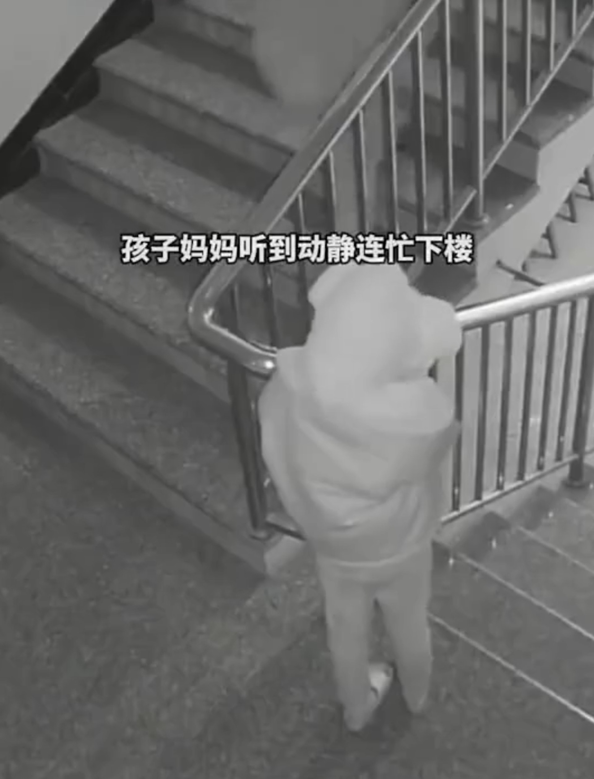 此時,男子也嘗試抓住孩子。樓上的女童母親聽到動靜後下樓查看狀況,男子才作罷離去。