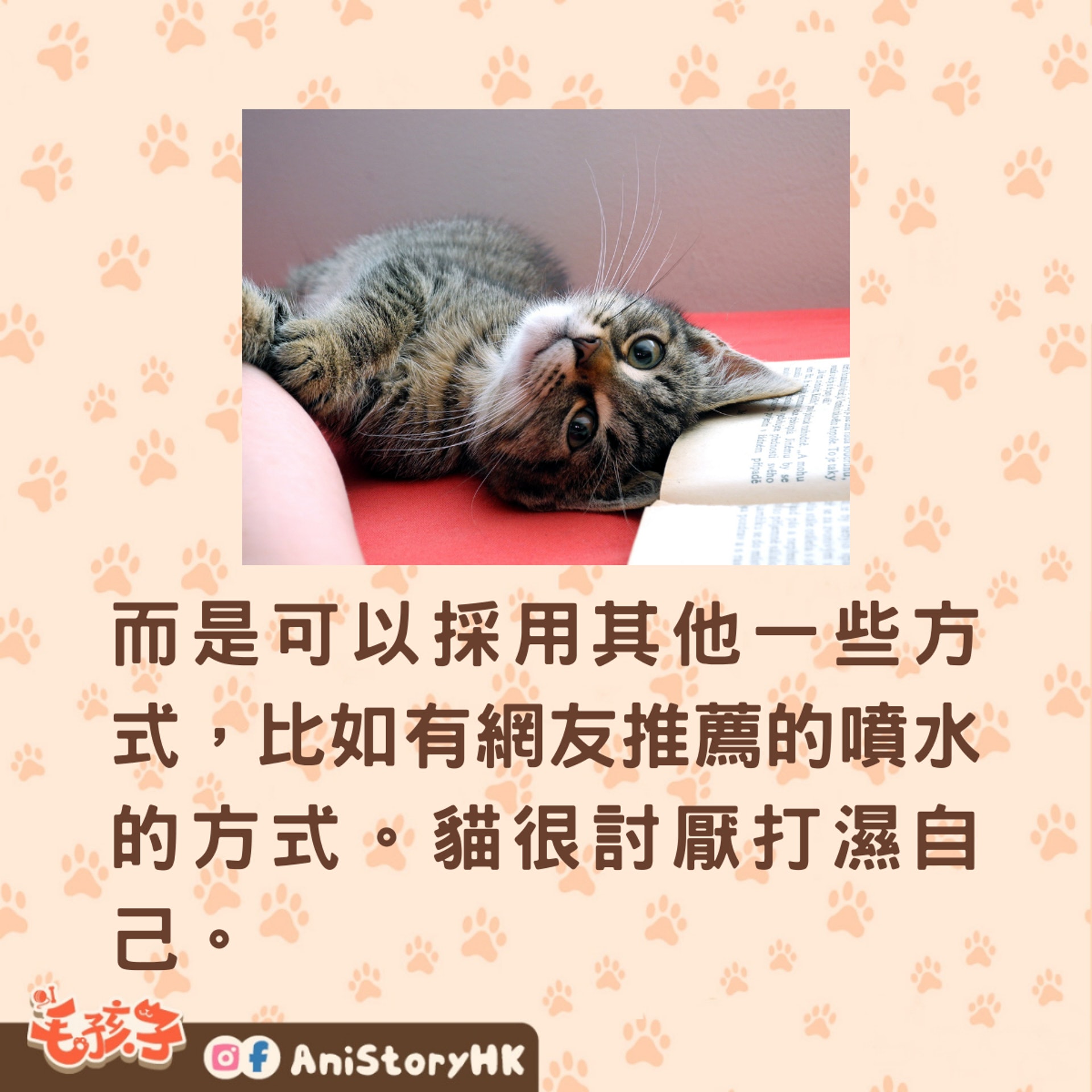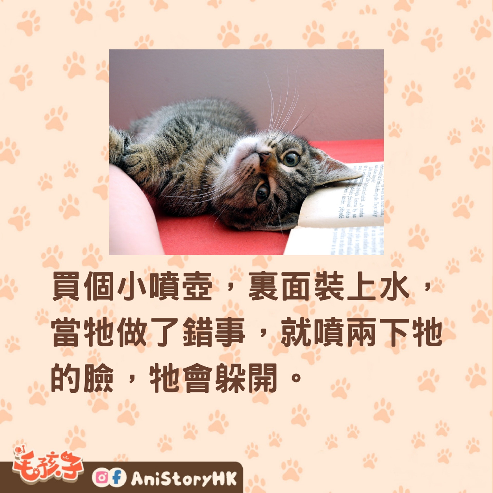 如果貓咪做了錯事之後,記住不能粗魯的使用武力懲罰。而是可以採用其他一些方式,比如有網友推薦的噴水的方式。貓很討厭打濕自己。買個小噴壺,裏面裝上水,當牠做了錯事,就噴兩下牠的臉,牠會躲開。教育的次數多了,牠就明白做錯事=被水噴,於是減少犯錯。同時我們也可以大聲喝斥貓咪,因為貓咪也很討厭很大的聲音。 |
