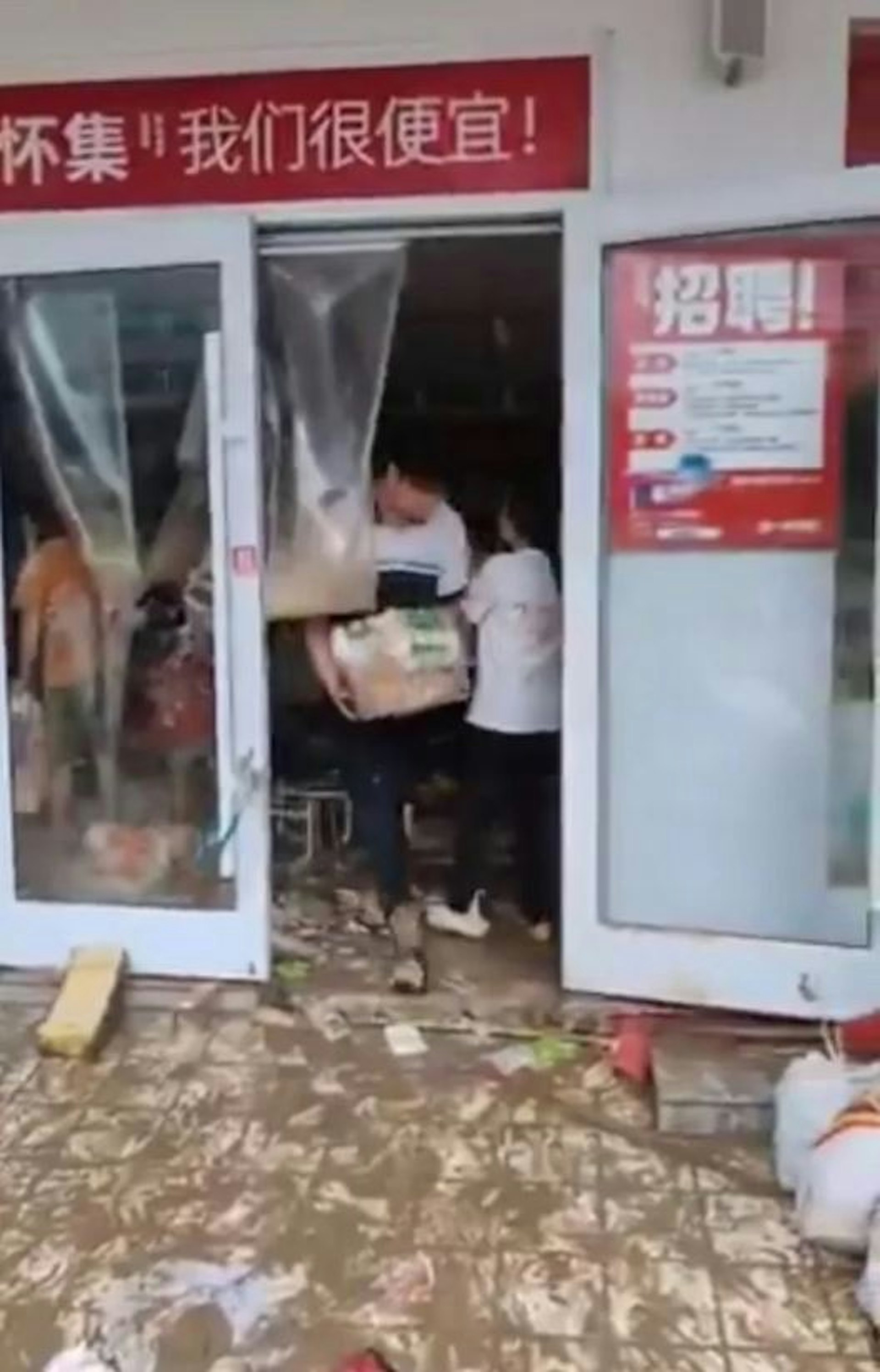 7 \7 c/ o. u' ?8 k w公仔箱論壇廣東懷集洪災,一家零食店控訴遭遇民眾「零元購」。(影片截圖)9 W& n$ r# m* l