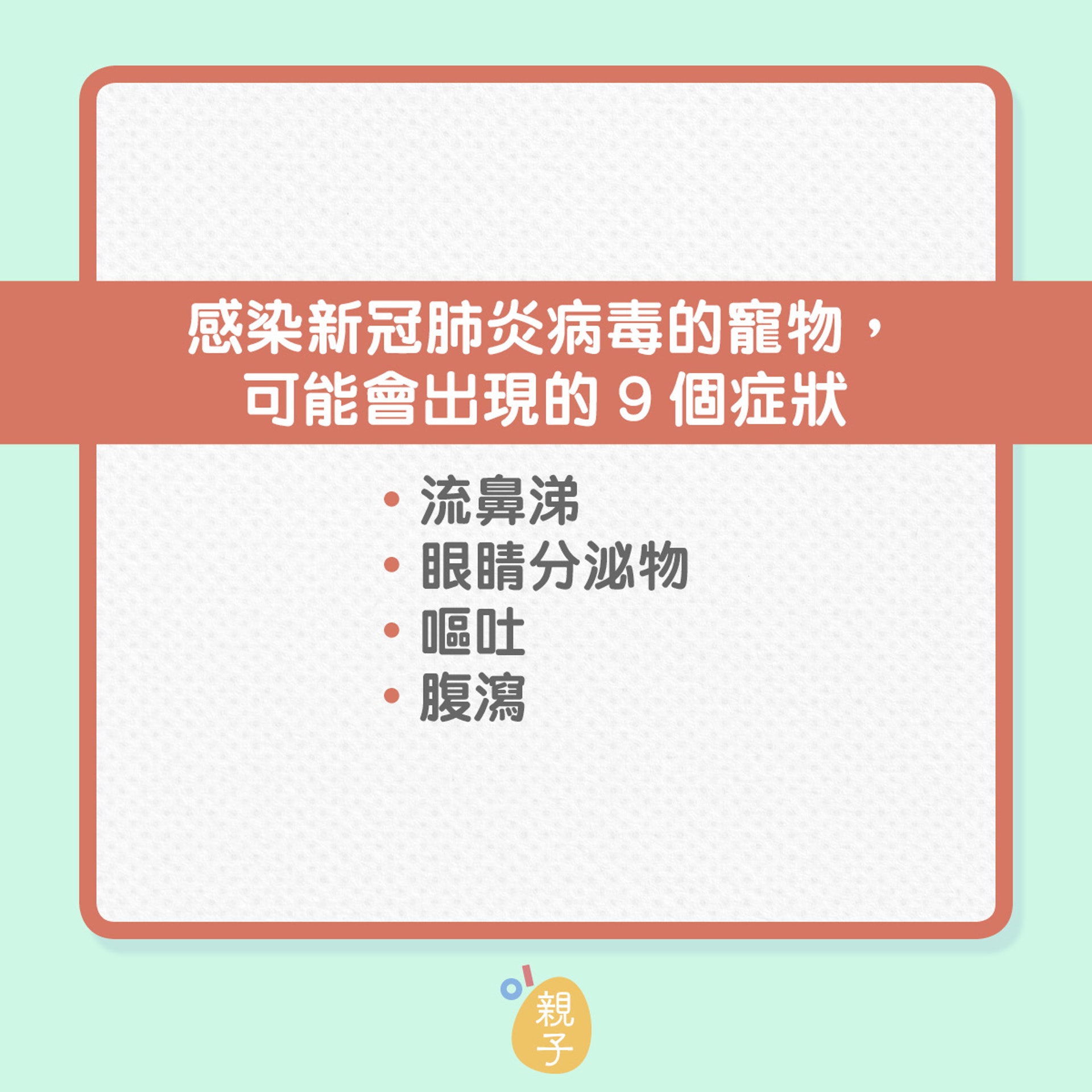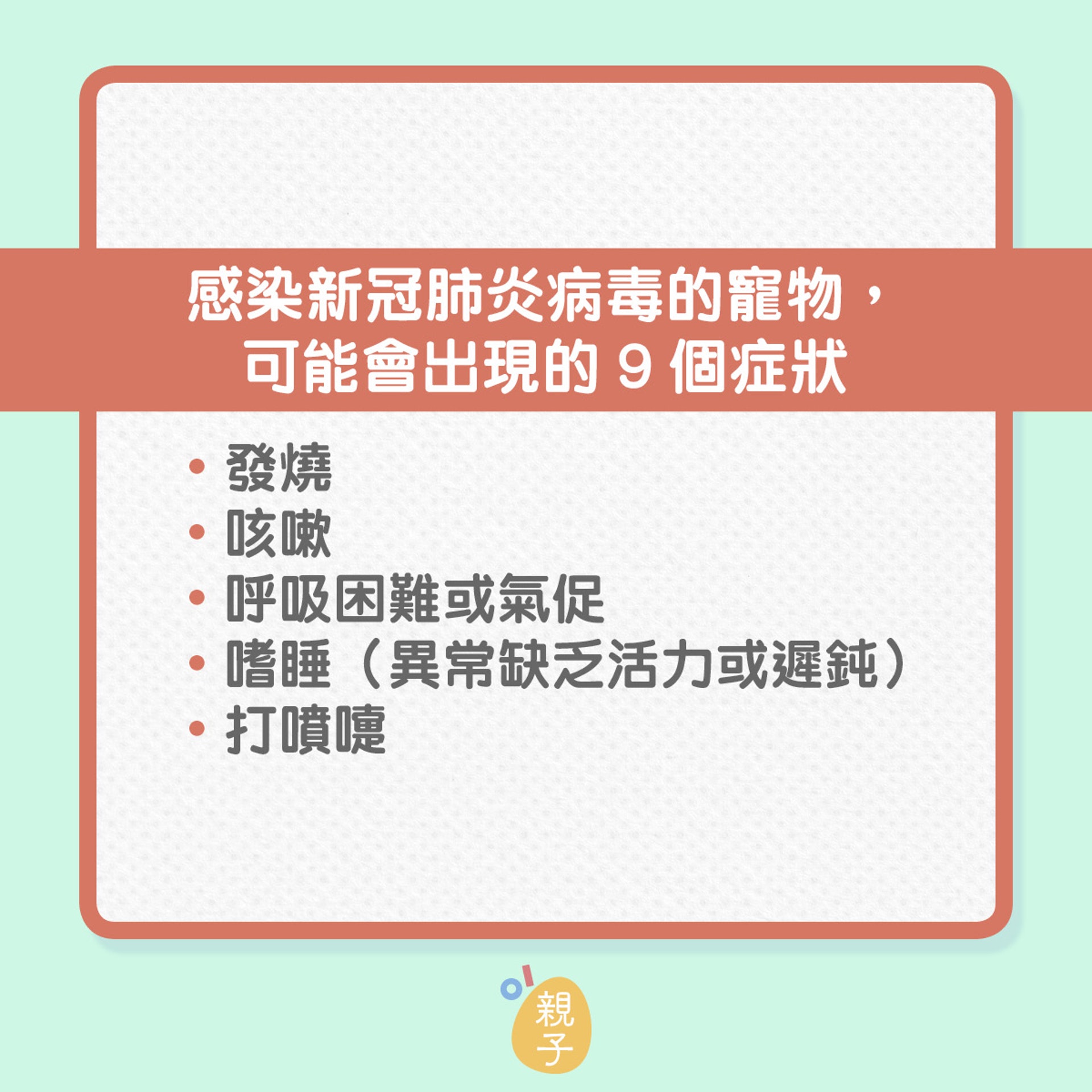 根據美國疾病控制及預防中心(CDC),感染新冠肺炎病毒的寵物,可能有以下9個症狀: